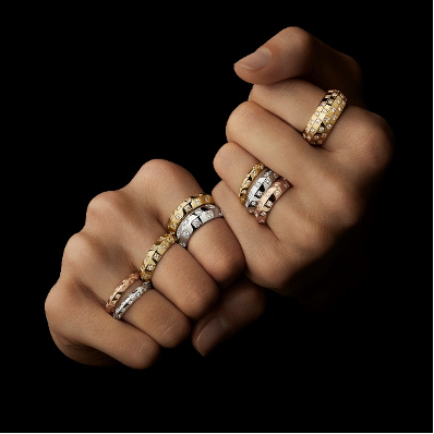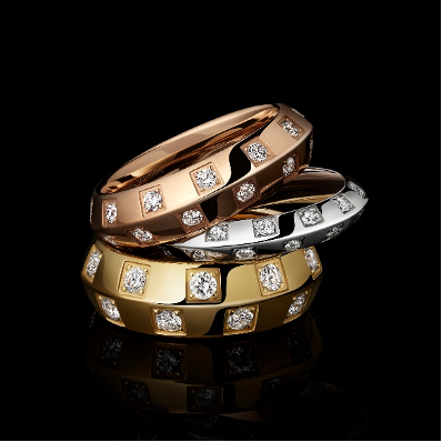 两款戒指的宽度不同,采用全新玫瑰金饰面,可与现有七款风格各具的黄金及白金设计作品谐美混搭。