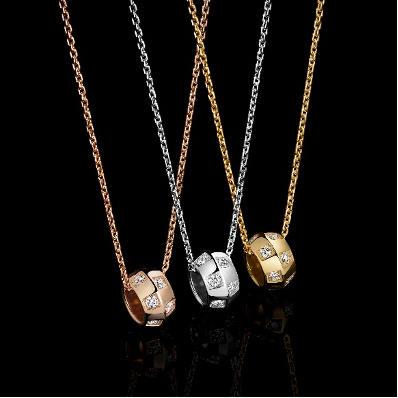 三款项链新品构思颖异,各自呈现不同宽度与饰面,极力展现出多元设计与多样选择,为系列又添臻作。链节均逐一经由手工打造与组装,令新款项链尽显巧致流畅和迷人触感,延续了路易威登Le Damier de Louis Vuitton珠宝系列的柔雅特质与感性魅力,正是这种动人本色使该系列迅速成为了经典配饰和适宜日常的时尚设计佳作。玫瑰金款项链宽为3.5毫米,黄金款项链宽为5毫米,亦有7毫米宽的白金款项链,款型丰富。铰接精巧、轻盈灵动的项链新作鲜明融合多种金材质和尺寸,兼具无限叠戴潜力与卓越手感,引人不禁尝试无穷混搭和错层演绎。