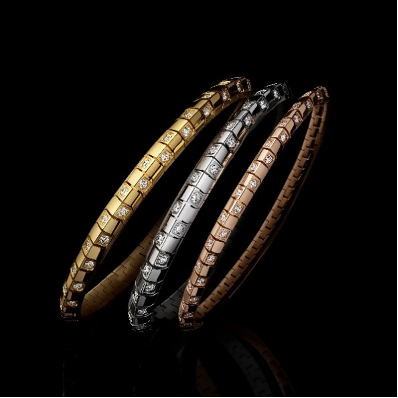全新系列的每款珠宝均运用抛光金材质饰面,散发柔和感性魅力,重现了Damier图案之美。微斜方格内点缀手工精细镶嵌的圆钻,又以四钉镶嵌工艺更添格调。标志性的几何中线贯穿系列创作,为设计注入独有锐气。为成就至臻动感与完美衔接,手链与项链的构造运用了打造腕表表链时的同款工艺。链节均由手工组装,并逐一刻意保留了微小间隙,以达到更为顺畅的贴肤度。扣环优雅而严密地融入整体造型设计,堪称技艺杰作。