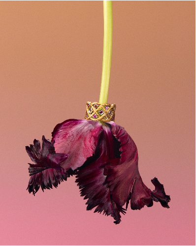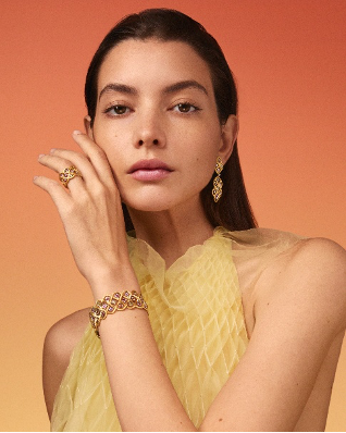 全新Étoilée Color系列作品悉心镶嵌珍贵宝石,勾勒出别具一格的瑰丽光影。新款作品包括项链、戒指、手镯和耳饰,并推出两款不同的配色款式:一款镶嵌红宝石、锰铝榴石和粉色蓝宝石;另一款则点缀以沙弗莱石和蓝宝石。绚丽宝石与温润金调和谐交映,演绎当代格调,重释匠艺之美。