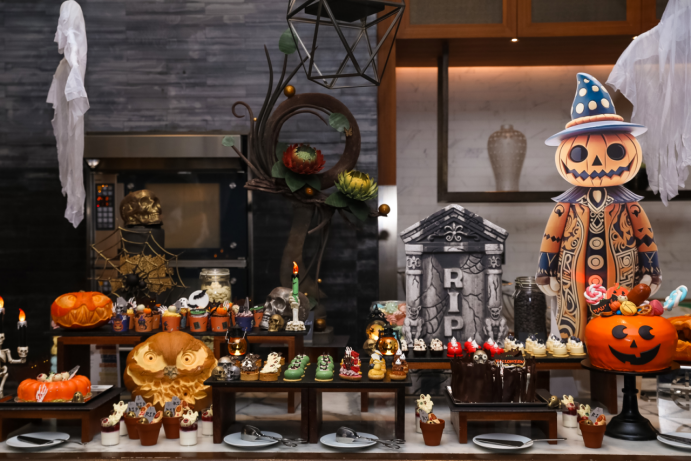 悦尚全日制餐厅特别推出【万圣节限定晚餐】,定价为 388 元 / 位、688 元 / 两位、988 元 / 三位。限定晚餐品类丰富,汇聚多国风味与主题佳肴:到场即赠“血红玛丽”特饮,快乐值拉满;现场分解海钓黄獅鱼等海馔,肉质鲜润;主菜如慢烤牛前胸配美式BBQ酱汁浓郁醇厚,烤比目鱼配柠檬黄油汁清新美味;另有黑松露玉米糊等配菜芝香四溢;更有多款万圣节限定甜品,带来甜蜜收尾。若化妆出席,即赠酒店专属 IP「诺宝玩偶」,用软萌治愈你的万圣节。