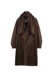 子母条灯芯绒廓形大衣延续经典巴尔玛肯廓形,子母条灯芯绒面料塑造出极强的肌理层次,复古而时髦。点睛之笔的配套围巾设计可自由调节造型,也可系于腰间,赋予速写客充分的造型自由。搭配同面料裤装,可形成极具视觉统一感的套系穿搭,是冬季速写客演绎复古风格的绝佳选择。