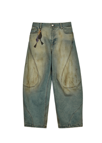 本季全新裤型4D立体造型神裤——海螺裤,以前瞻性设计突破速写裤装设计边界,灵感源自海螺的曲线立体结构,通过立体剪裁与立体缝线打造极致的立体造型感。钩针海螺图案被扫描后转印在裤身上,在现实与虚构之间制造出一种玩味的反差。全身脏洗工艺赋予其独特质感,它属于乐于探索形态边界的速写客,无声却张扬,自成风格。