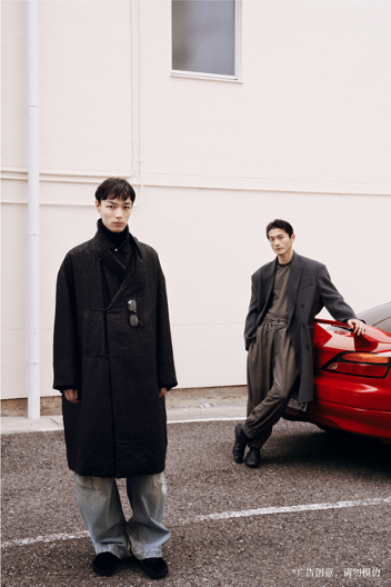 本季延续对新浪潮背景下镜头对人与空间“真实”的表达,在工艺、版型以及面料上精雕细琢,构筑出兼具艺术玩味与经典优雅的冬季衣橱。融合中式平面剪裁与西方立体结构,香云纱面料、针刺工艺等传统设计语言被重新演绎,形成独具东方气质的现代表达,诠释出一种当代的、摩登的、忠于长期主义的玩味姿态。