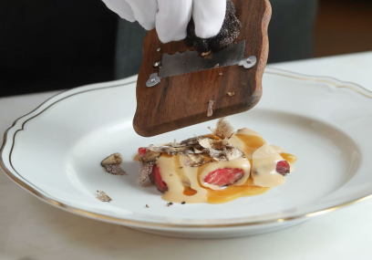 时值金秋,餐厅同步推出时令限定菜单,以珍贵馥郁的松露演绎别具一格的秋日诗篇。其中亮点包括红牛帕玛森干酪乳酪火锅配鸡蛋、栗子与白松露,丝滑蛋液与温润干酪酱交融,衬出当季白松露的奔放香气;意式手工土豆饺子配羊奶酪,黄油汁及黑松露,醇香黄油汁与风味羊奶酪馅料浑然一体,黑松露为其增添深邃层次;还有香浓的炙烤M5级和牛里脊配白兰地汁及黑松露,优质和牛经炙烤后肉香浓郁,与白兰地酱汁及黑松露的香气相得益彰。