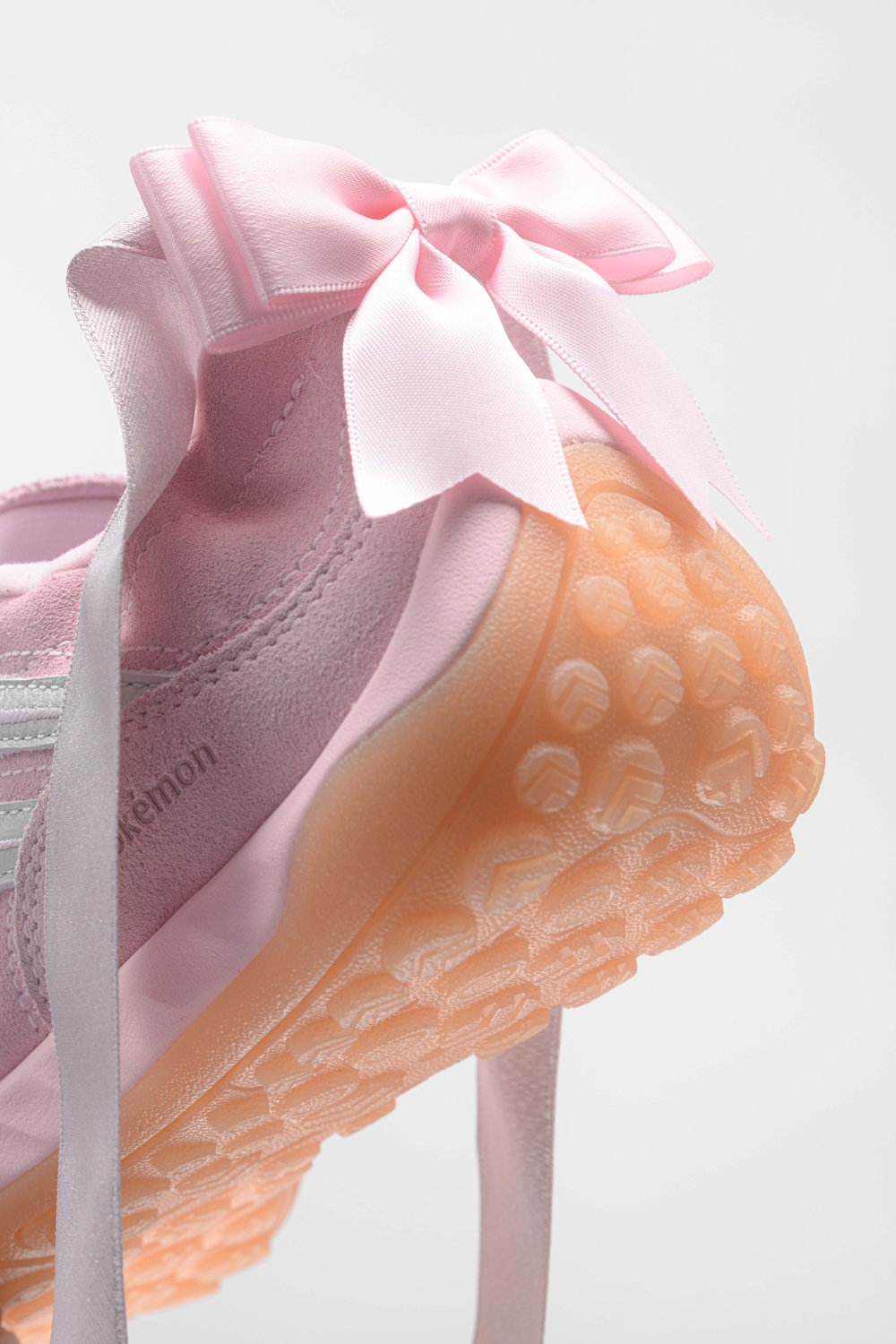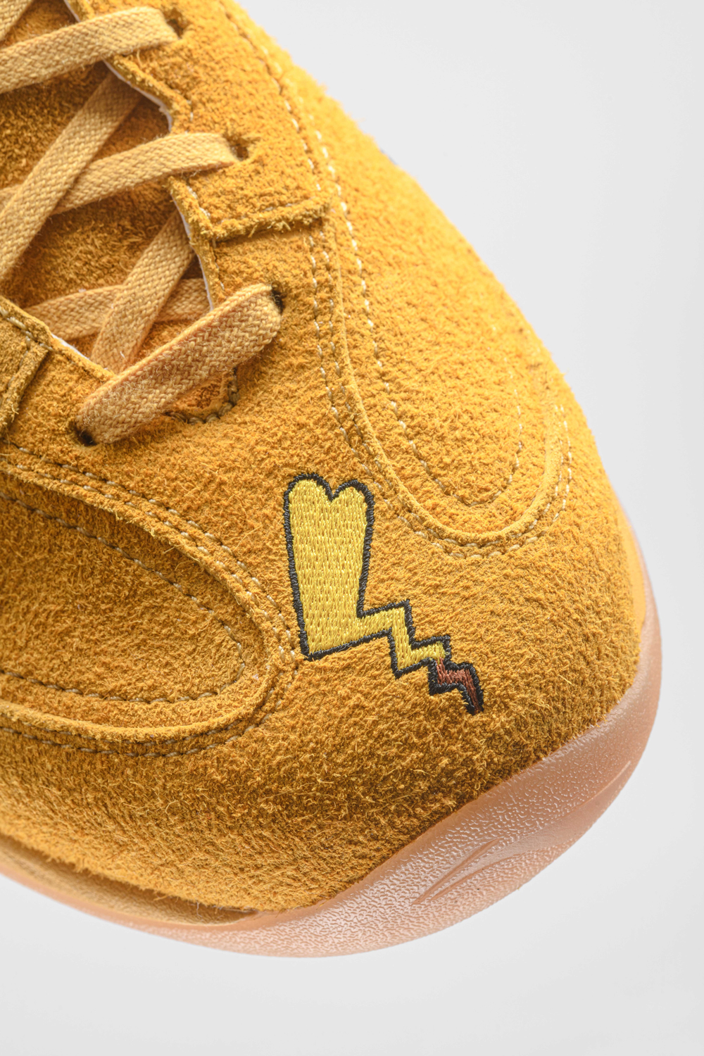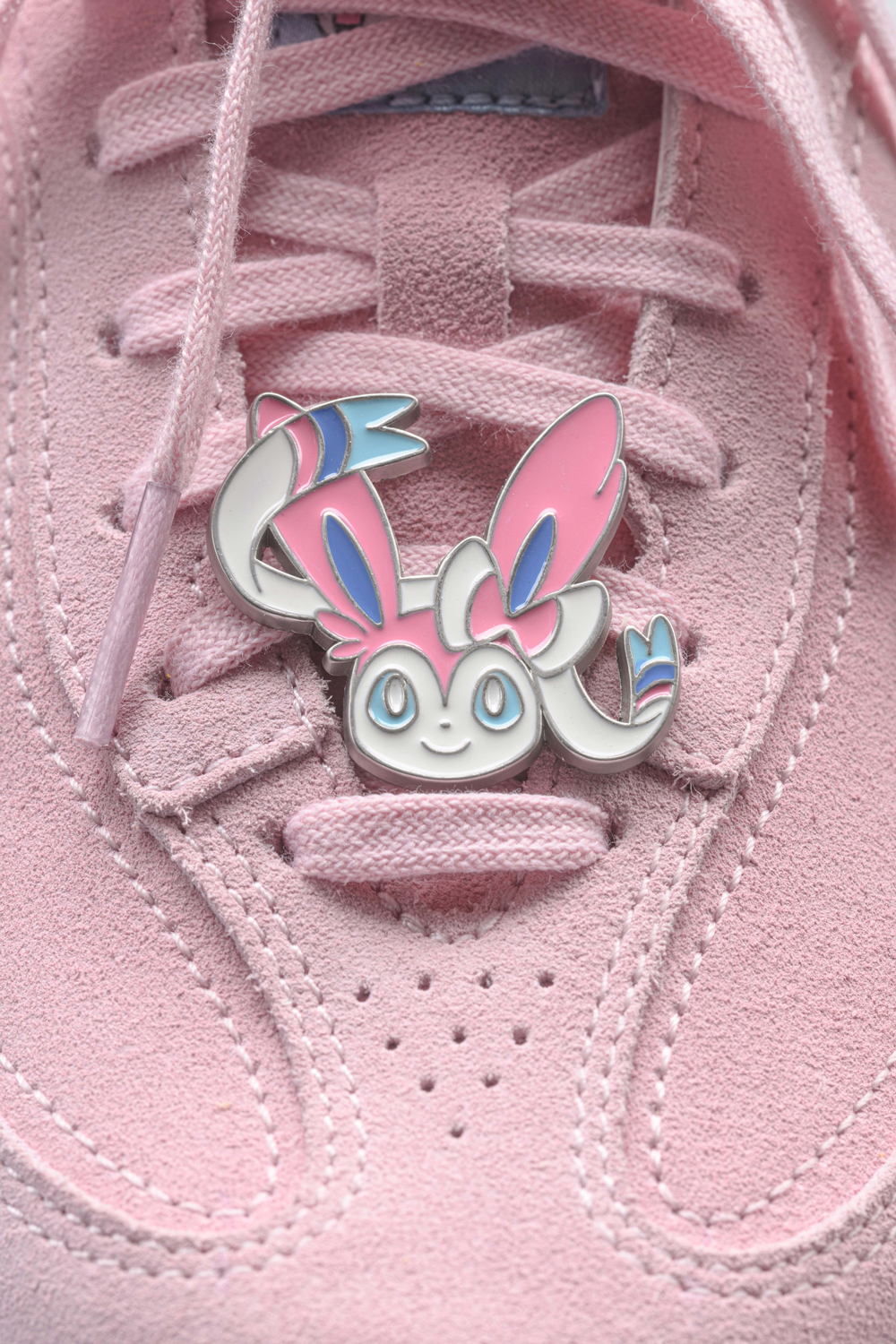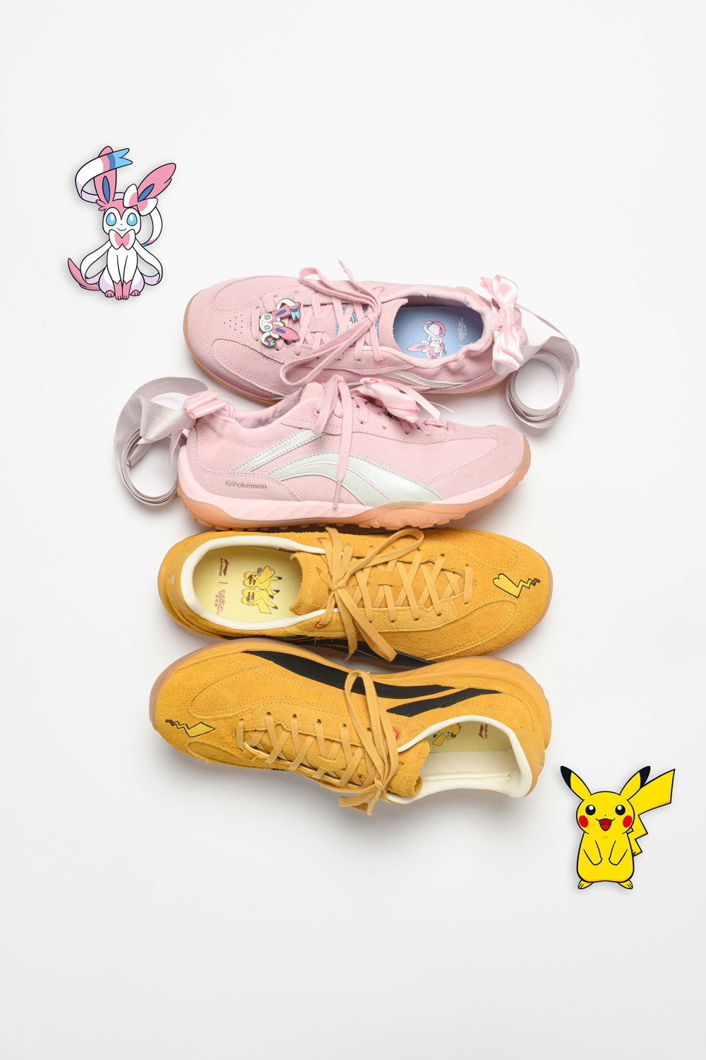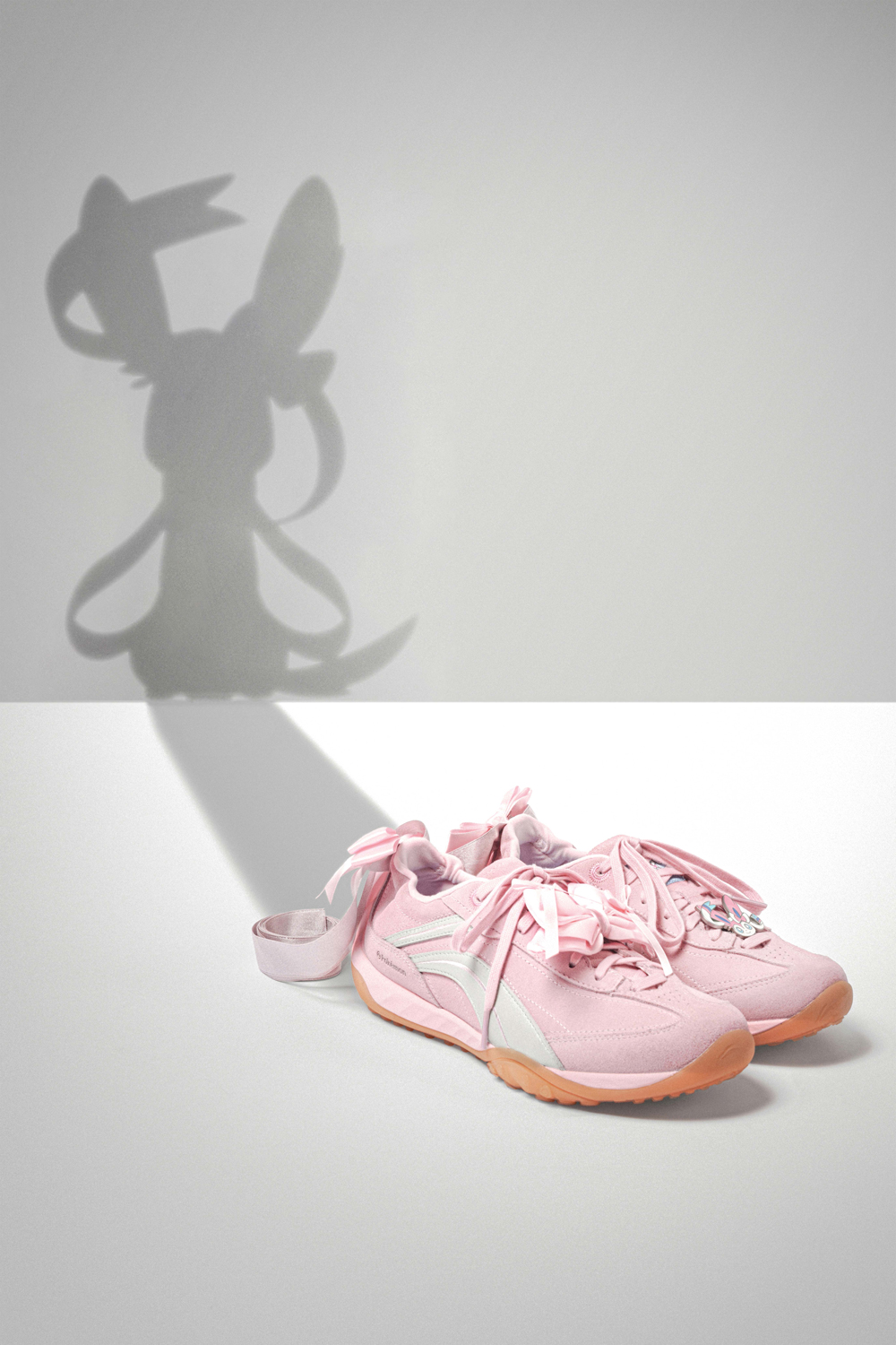 李宁心流复古薄底鞋款,融合宝可梦系列中备受喜爱的“皮卡丘”与“仙子伊布”角色形象,高品质翻毛皮材质并搭载云PLUS科技,以复古潮流质感演绎薄底流行趋势的同时,让轻量薄底也能踩出松弛步调。其中,以“皮卡丘”为设计核心的心流鞋款呈现其经典黄黑配色,设计深度挖掘皮卡丘的CP情感互动,在左右脚鞋头分别饰以男、女皮卡丘的闪电状尾巴刺绣,鞋垫则制作为皮卡丘“献花”场景,一只皮卡丘手持小花,向另一只皮卡丘“献花”,使角色跃然眼前。鞋舌与鞋尾的闪电标识与鞋头呼应,为复古搭配提供新灵感;仙子伊布以其缎带般的触角与优雅的战斗姿态深入人心,故本次联名以仙子伊布“用触角传递平和波动”的设定为灵感,将鞋身设计为芭蕾少女风格。将丝绸材质的蝴蝶结作为核心设计元素,可拆卸的脚踝缎带,模拟仙子伊布缠绕训练家手臂的亲密互动。丝绸材质的蝴蝶结,还原宝可梦图鉴中“摇曳触角起舞”的梦幻形象。褶皱花边领口、IP鞋带饰扣、鞋带与鞋后跟处所配可拆卸蝴蝶结,设计以创意灵巧的方式打破运动鞋与时尚的边界,通过仙子伊布“优雅中蕴含力量”的角色特质,唤醒少女心的“战斗优雅”。