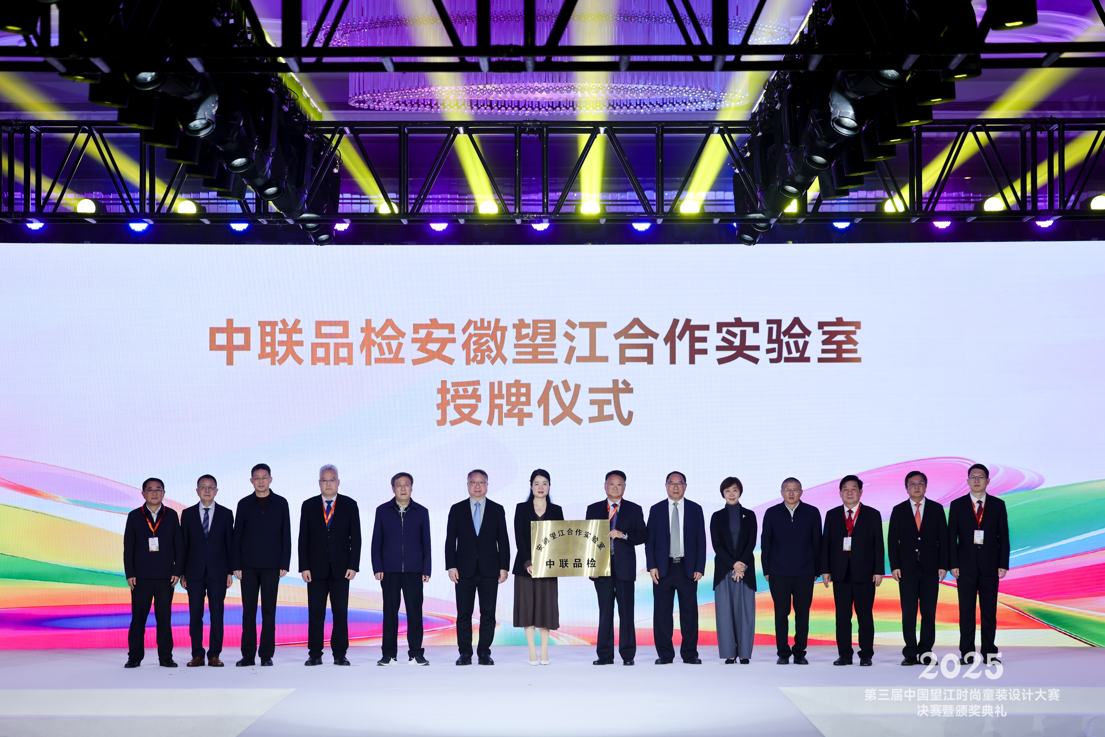 在不断深化产赛融合的进程中,望江童装产业正迈入协同发展的新阶段。作为本届活动的重要环节,“中联品检安徽望江合作实验室”授牌仪式在典礼现场隆重举行。童装不仅关乎童年的美好想象,更承载着儿童健康与安全的责任。产品质量与检测标准,是守护这份纯真的第一道防线。活动现场,授牌方代表为中联品检(北京)技术集团有限公司董事谢凡,接牌方代表为望江县政府党组成员王绍东。孙瑞哲、阎岩、刘家强、胡松、李波、章松、查汉斌、章洪海、杨林、汪久清、李木林、朱显璋等嘉宾共同见证了这一仪式。
