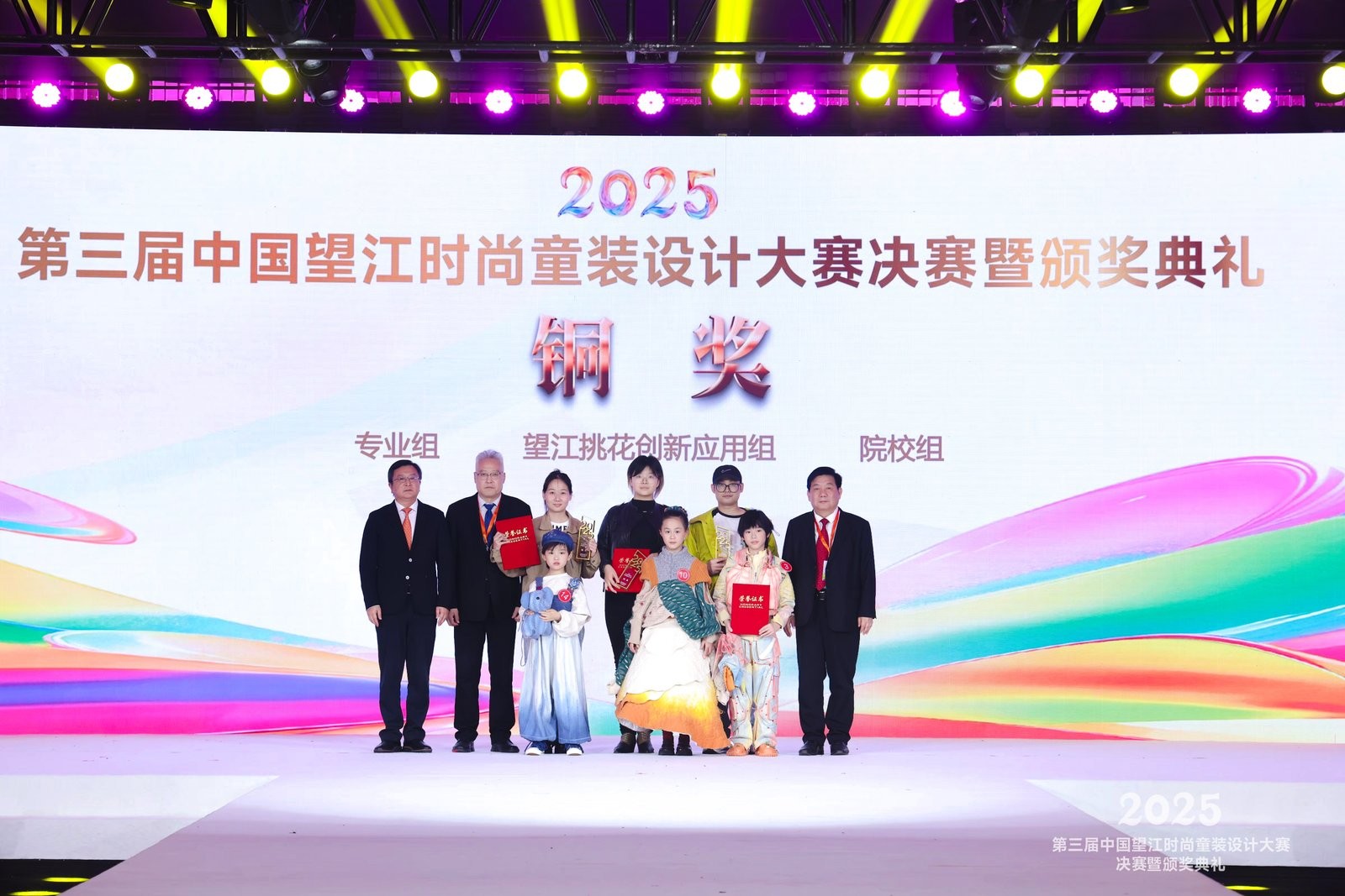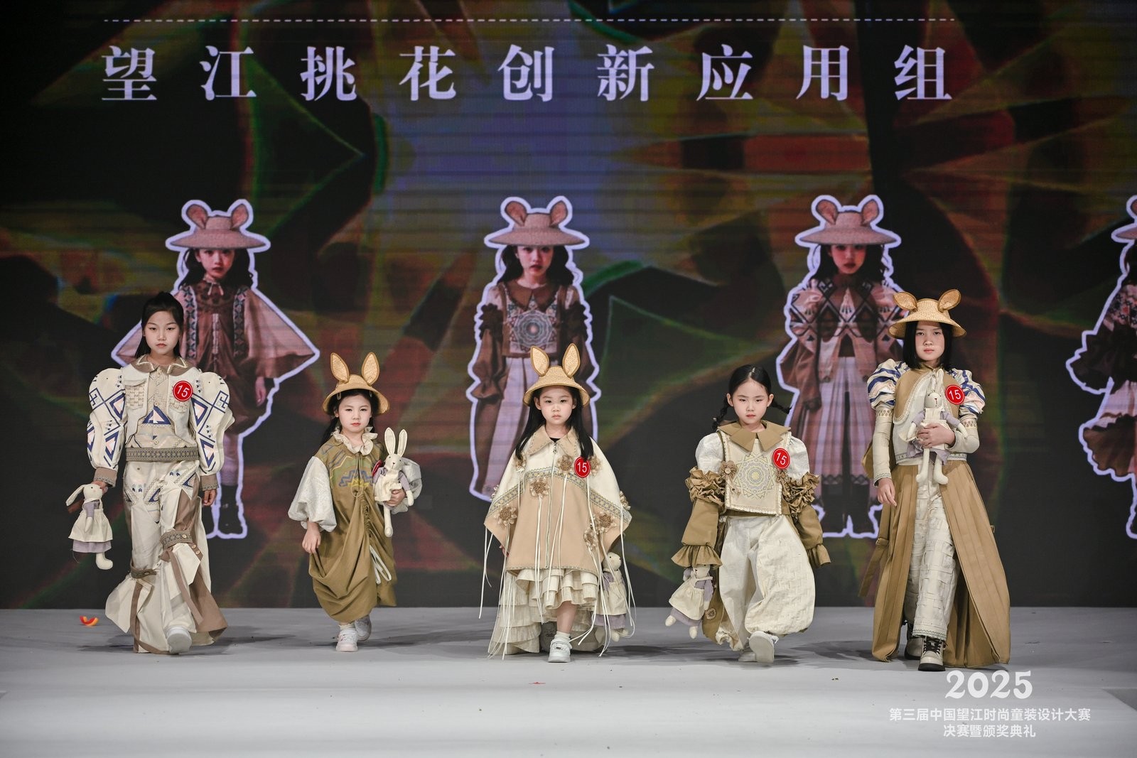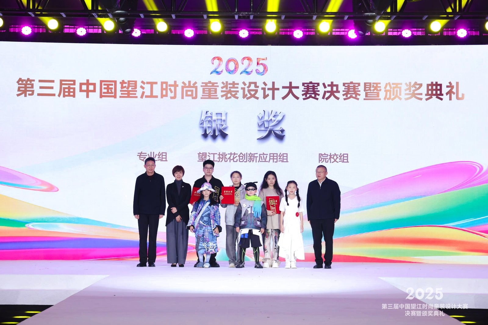 11月2日晚,秋意融融、光影流转,2025第三届中国望江时尚童装设计大赛决赛暨颁奖典礼在安徽望江县国际大酒店盛大举行。作为国内童装设计领域最具影响力的专业赛事之一,本届大赛以“逐光”为主题,寓意以设计为光、以创新为翼,汇聚全国新锐设计力量,以一场凝聚梦想与创意的童装盛宴,照亮中国原创设计的崭新篇章。16组入围佳作以丰富的文化语汇和前瞻的设计语言,展开一场童装美学与创新思维的时尚竞演。选手吴双、吴鹏鹏的作品《向野而生》,王瑶的作品《时光机》,张霖的作品《年味儿》分别夺得本届大赛专业组、院校组、望江挑花创新应用组的金奖。他们以卓越的创意实力与非凡的设计表达,向业界与大众展示了中国新生代童装设计师的无限热忱与蓬勃力量。