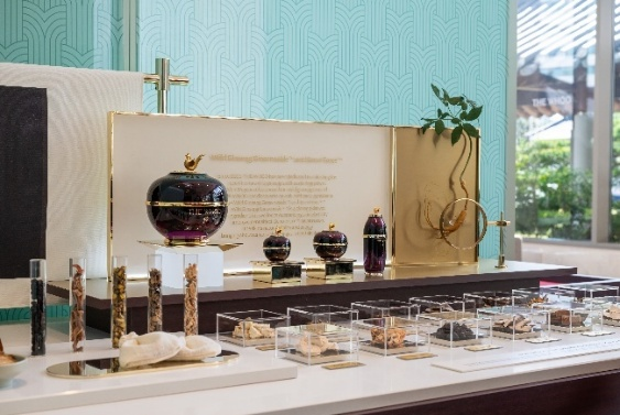 展区后方陈列着THE WHOO后标志性产品“凝颜”系列,前方特别设置了山参香气体验区,嘉宾可沉浸式体验作为产品核心原料的珍贵山参香气,并欣赏原料实物的展示。