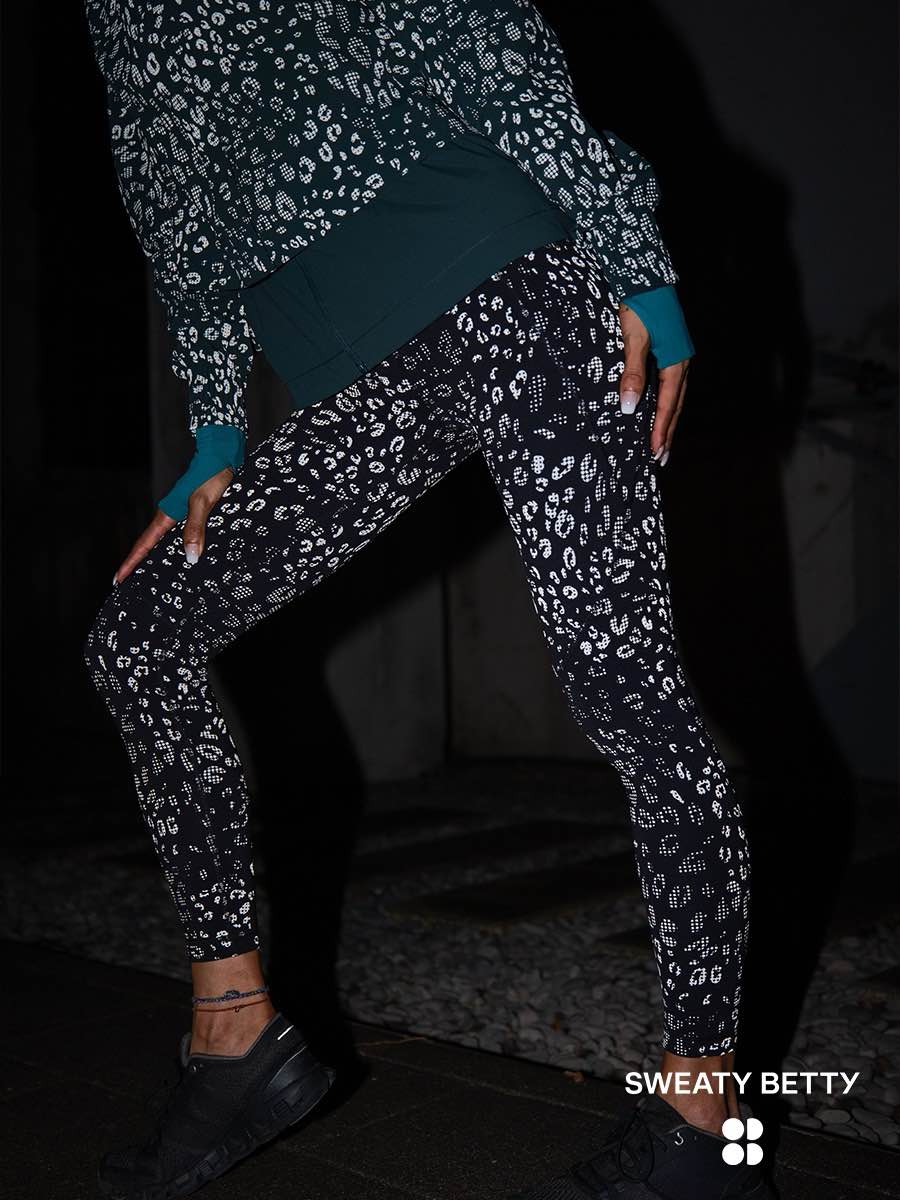SWEATY BETTY Power热力系列黑色反光豹纹九分紧身裤