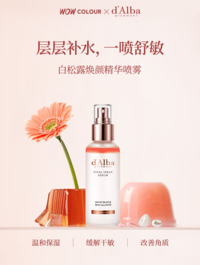 d'Alba 黛尔珀在成功进驻韩、美等国际市场后,此次与 WOW COLOUR 携手,成为其深耕中国市场的关键落子。这一举措不仅是品牌在华的重要亮相,更承载着生活方式倡导的内核,旨在助力中国都市消费者在快节奏中,找到适配自身的专属护肤方案。