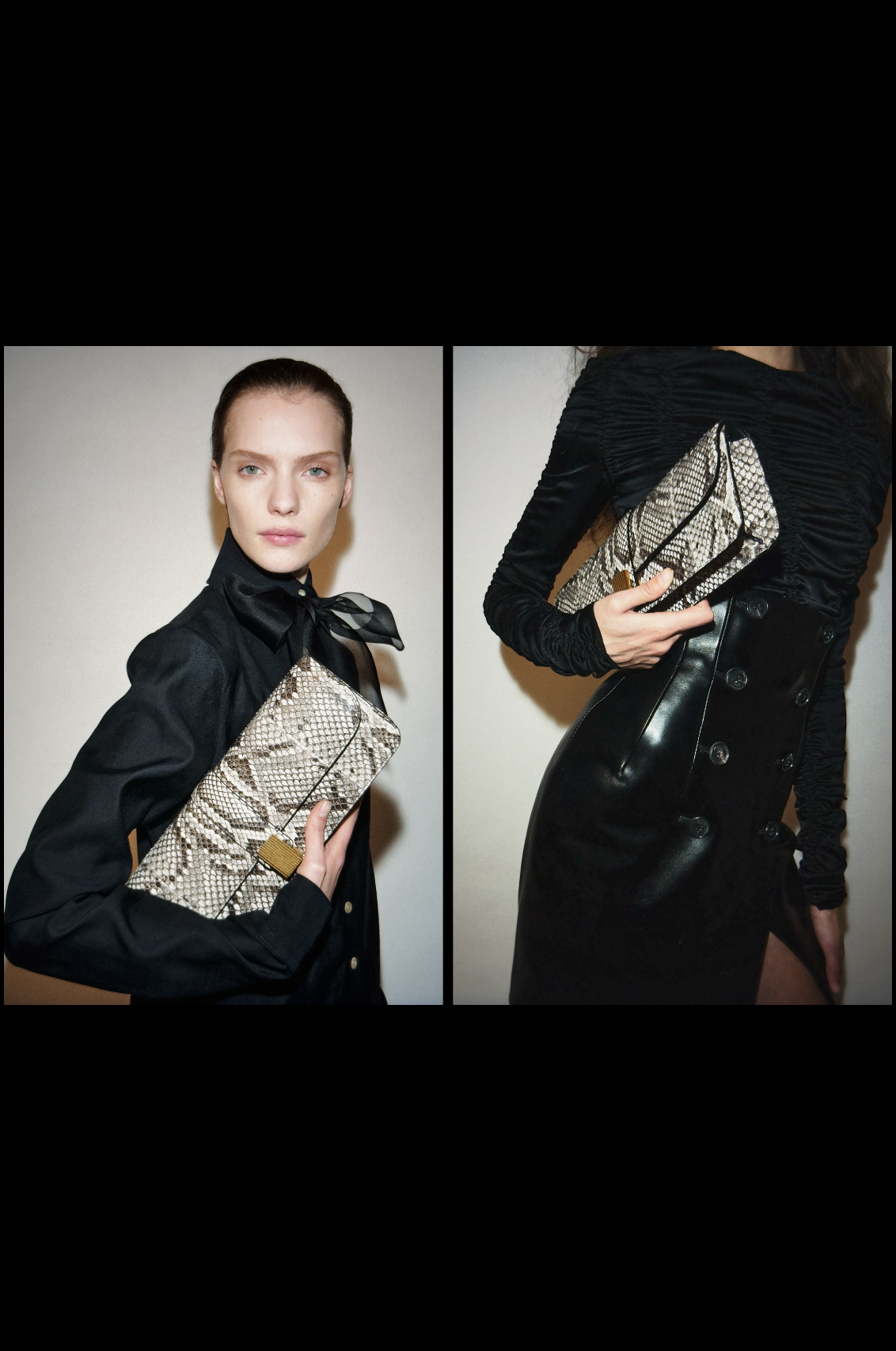 本季鞋履设计转向以柔韧性为核心的表达。本季焦点落在 Marlene 与 Marian 鞋款上——它们是对“柔软”的深度研究,经过精心设计以实现形态流转。其结构并非固定不变,而是富有回应性,通过贴合、重塑的过程赋予存在感。其他廓形——如宽松平底鞋、雕塑感高跟鞋——延伸了“动态即身份”这一理念。手袋方面,Blake 系列迎来全新 Blake Clutch 手拿包,凝练诠释了该系列的作为标志性廓形。它的流畅线条、建筑美学及锐意剪裁,反映出本季对比例精髓的极致追求。