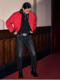 男装系列以可双面穿的飞行员夹克为主打,兼具百搭与细节感。仿羊羔绒Type III丹宁夹克与无衬里宽松版型 Type III丹宁夹克重新演绎品牌经典,以松弛剪裁诠释现代风格。可双面穿长袖衬衫夹克带来层次变化,圆领卫衣与金属光泽蝙蝠标长袖 T 恤为节日造型增添轻松格调。下装包括 578TM 束带牛仔裤、505TM 宽松直筒牛仔裤与 502TM 锥形牛仔裤,兼具舒适与型格,为节日期间的多场合穿搭提供多样可能。