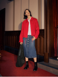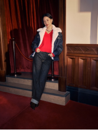 女装系列包括加厚仿羊羔绒外套、V 领针织衫与织纹衬衫等单品,巧妙融合层次与比例变化,展现轻松而自信的姿态。Ribcage高腰直筒牛仔裤与纽扣半身裙在挺括与柔和之间取得平衡,体现女性的力量与优雅。全系列以柔韧廓形与精致质感延续 Levi's® 的工艺精神,在节日氛围中呈现自信与松弛的平衡。