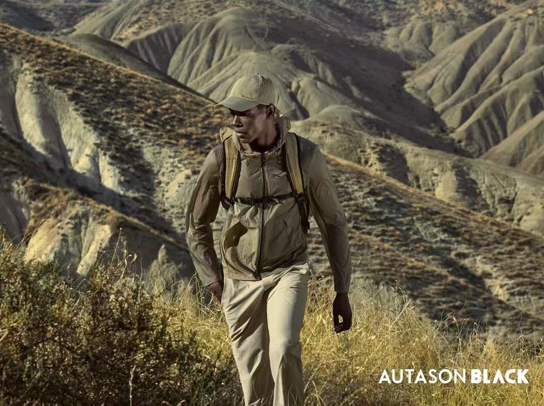 镜头转向卡兰奇沙漠的壮阔峡谷,严苛的自然环境,将服装的功能性与时尚感推向新高度。AUTASON BLACK 以“精致户外”理念展开旷野探索。品牌标志性的科技 × 天然融合工艺在此迎来全新突破:AUTASON BLACK全新肌理面料系列应运而生,将沙漠岩壁与峡谷沟壑中的纹理与自然环保面料精妙融合,既保留天然材质的亲肤触感,又以功能型面料搭配低饱和自然色系,打破城市与荒野的边界。让穿着者在徒步探索与都市社交中皆能游刃有余,演绎勇气与自由的当代注解。
