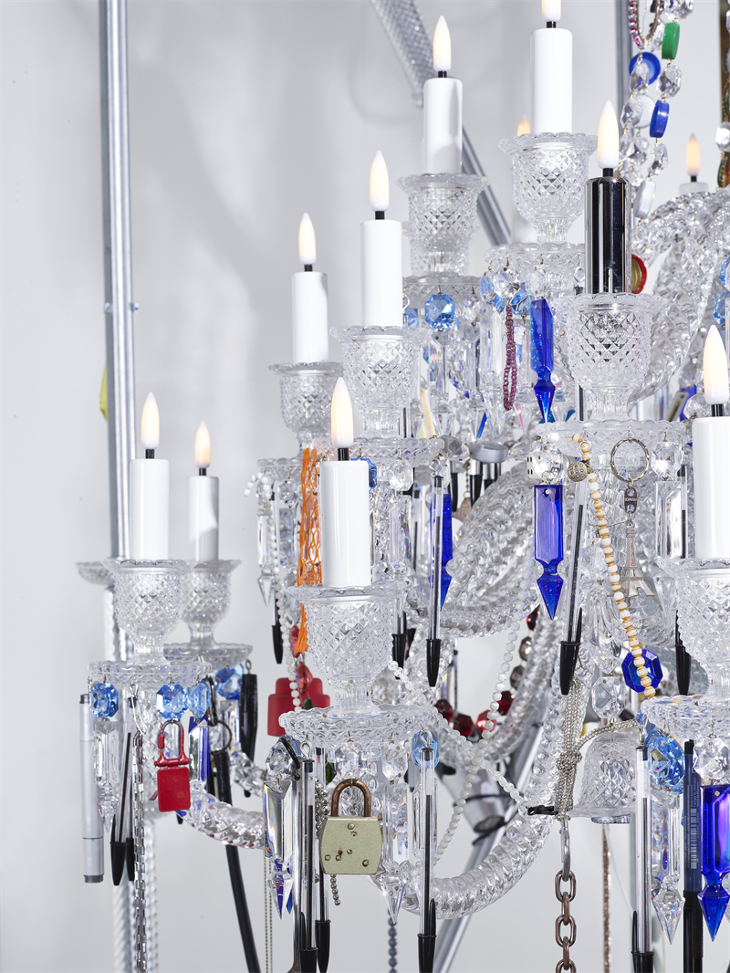 “通过这件新作,巴卡拉天顶系列枝形吊灯化身信使,将当下的碎片携往想象的未来。在那里,‘再利用’成为一种生活方式,由那些曾被我们忽视的物件悄然延续。在重塑这款枝形吊灯的过程中,我既怀念它曾为家庭餐桌带来的喜悦和魔法般的光辉,也构想另一种现实:一个水晶不再可得的世界。在这个奇妙的幻想中,枝形吊灯的主人需以手边任何可用之物,替代那些缺失的部件。于是,那些如今被我们视若无睹的日常用品,骤然变得珍贵无比。可抛弃之物化作珍宝,价值体系悄然更迭。平凡之物蜕变为关怀、记忆与生存的象征。”——— 哈里·努里耶夫