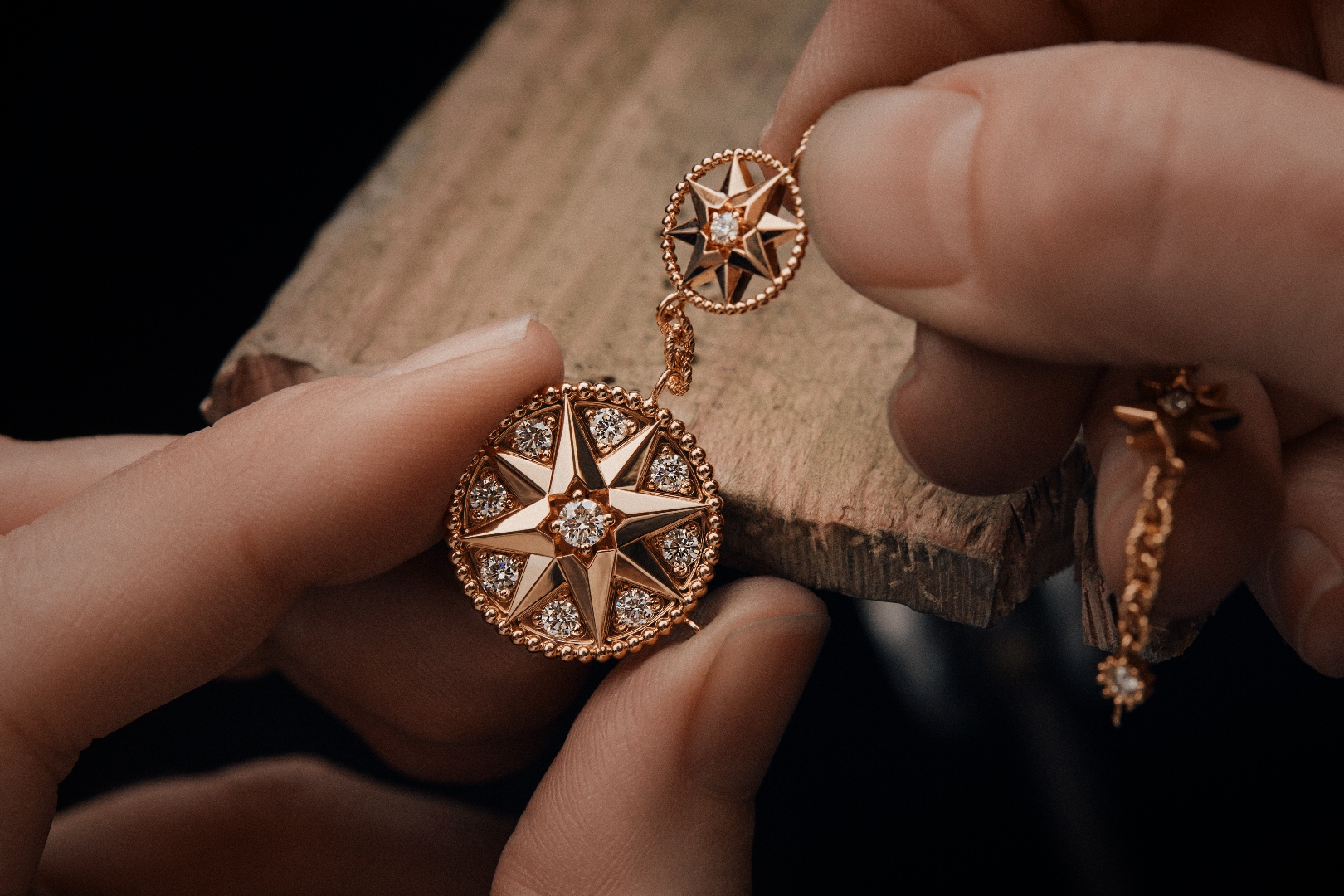 故事始于克里斯汀•迪奥(Christian Dior)的故乡格兰维尔(Granville)。在Les Rhumbs家族别墅的花园中,一处罗盘玫瑰马赛克图案默默守护着迪奥先生的童年时光。自那时起,这颗八芒星便成为他心中的罗盘,指引其启程远航。而后,这一符号亦化为维多利娅的灵感源泉,缔造出一系列承载情感寓意的珠宝。
