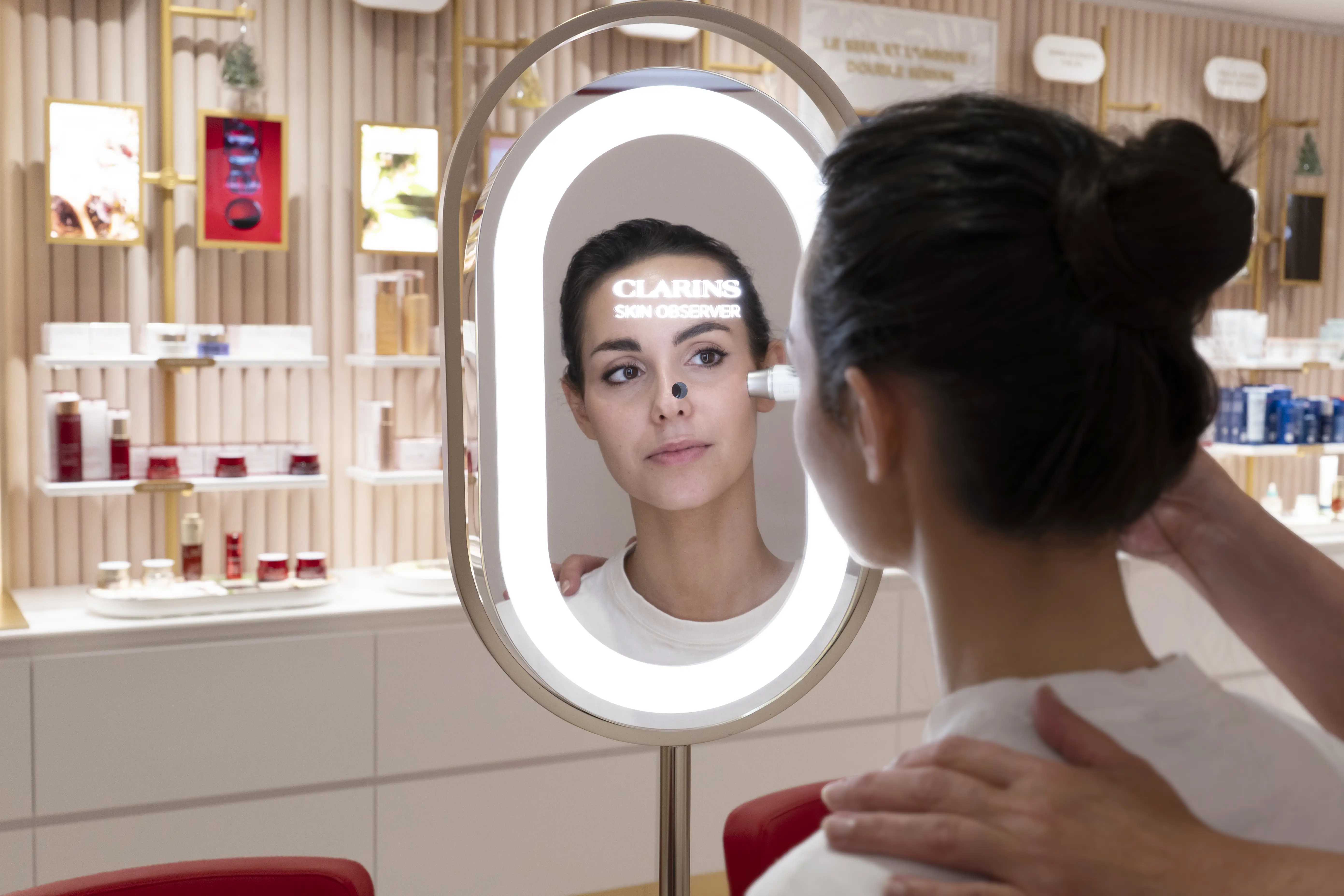完美融入零售专柜咨询体验:仪器采用简约镜面设计,巧妙整合于娇韵诗各专柜标志性的护理顾问台。