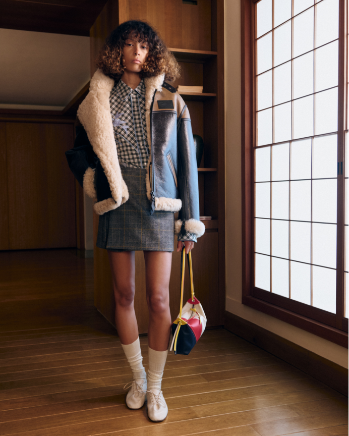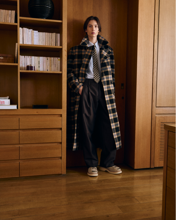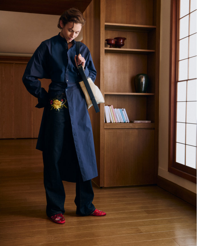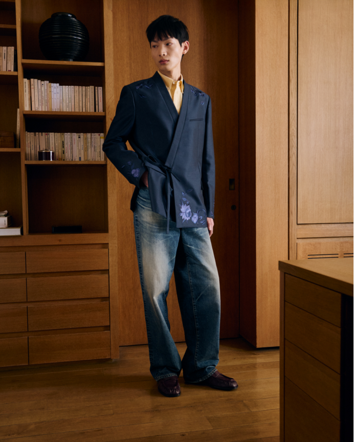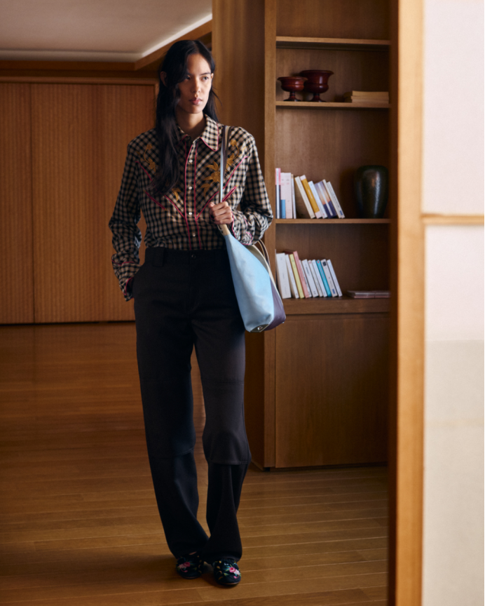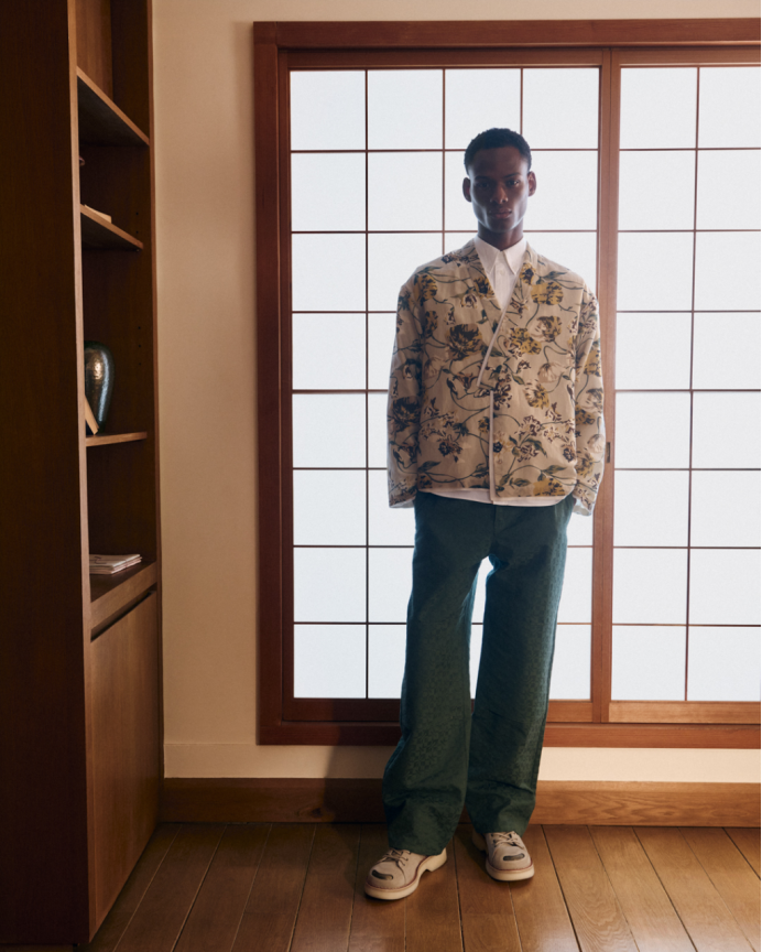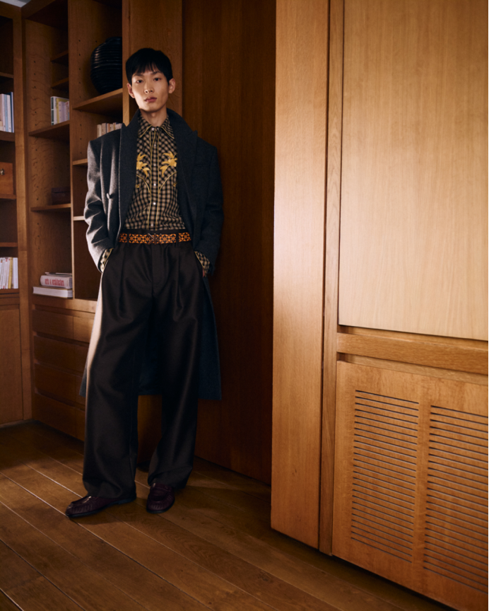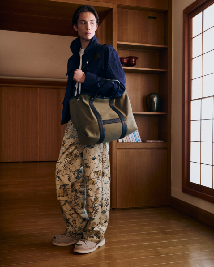 法式与东方美学间的重要交融贯穿整个系列。NIGO与其前辈高田贤三先生一样,沉醉于文化、符号与经典元素的融合。NIGO标志性的工装风格,与美式复古及其他典型的美学元素相遇——从学院风图案和法兰绒牛仔衬衫,到中式盘扣细节,再到精致的意式剪裁与东方剪裁工艺。