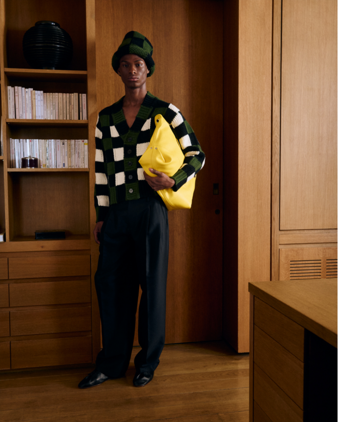 视觉趣味是本系列的核心——从NIGO的双色新式剪裁西装、到大胆的棋盘格针织、双色与三色条纹设计。经典元素被重新演绎,正如KENZO原始标签、廓形与图案被再度演绎与构想。源自1980年代KENZO Jungle系列的虎头图案强势回归;1986年的Kite手袋被复刻并演化为肩背包与托特包款式。同样从档案中提取的字母“K”成为关键标识,为T恤、夹克和开衫注入鲜明的学院风精神。与之相伴的还有全新“Kenzogram”图案,被运用于丹宁、尼龙、平纹衫、针织以及腰带之上。