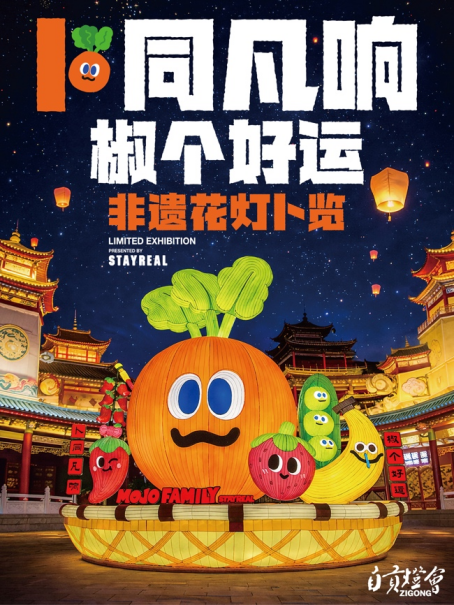 当千年非遗的光华与潮流IP的元气相遇,一场现象级的文化盛宴已然启幕。2026年1月,创意潮流品牌STAYREAL携旗下超人气IP「MOJO FAMILY」以文化探索者之姿,正式登陆享有「天下第一灯」美誉的第32届自贡国际恐龙灯会,不仅带来了《卜同凡响·椒个好运》非遗花灯卜览,还打造了「椒」个好运限定店。这是国家级非物质文化遗产——自贡彩灯制作技艺,以其非凡的技艺高度与艺术表现力,与潮流文化以及当代创意的一次里程碑式对话。STAYREAL始终怀揣热忱,以充满情感温度的IP「MOJO FAMILY」为媒介,持续探寻并拥抱中华文化的浩瀚星河,致力于将传统技艺中流淌的故事与匠心,转化为当代的情感语言,传递至更广阔的世界。