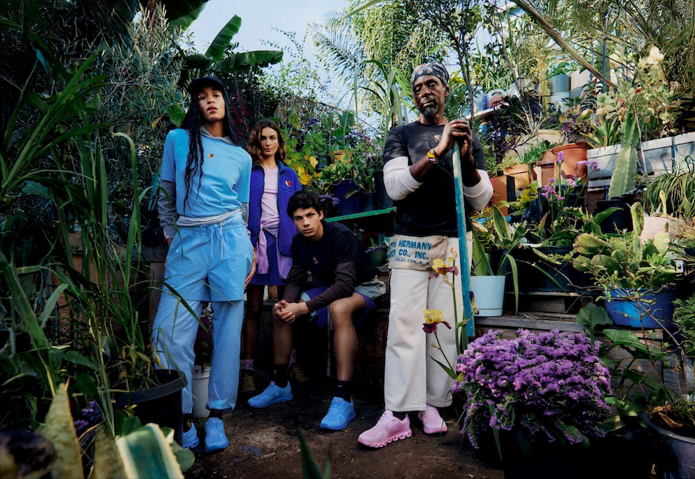 本次联名新系列以野花为核心主题:野花对再生农业至关重要,它们能将大自然那种野性而实用的多样性重新带回土地。宣传片由摄影师Casper Kofi在The Ron Finley Project组织的"Gangsta Garden"拍摄,模特阵容包括Andreea Diaconu、Indira Scott以及身兼模特与音乐人的Raphaelle。这座花园位于洛杉矶中南部,旨在赋予社区自种食物所需的知识与自由。它是城市空间和"食物荒漠"重野化的象征,从而将其转变为孕育生机的沃土,这座花园亦成为扎根于食物公平使命的设计合作最生动的舞台。