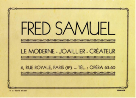 1936年,当法国仍深陷全球经济危机的余波时,开创新的事业需要极大的勇气。当时未满三十岁的Fred Samuel无畏风险。承袭家族的创业精神,他在巴黎皇家大道6号开设了首家精品店,大胆打破当时珠宝品牌一定入驻芳登广场的成规。在导师Wroms兄弟的鼓舞下,Fred Samuel迈出开创性的一步。这两位珠宝商悉心栽培,将他培养成了一位宝石与珍珠,尤其是养殖珍珠领域的专家。凭借对行业前景的前瞻,Fred Samuel逐渐成为声名远播的珍珠专家,其“至美养殖珍珠系列”在巴黎享有盛誉。