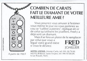 “你挚友的那颗钻石有多少克拉?”广告,20世纪70年代 FRED斐登典藏档案