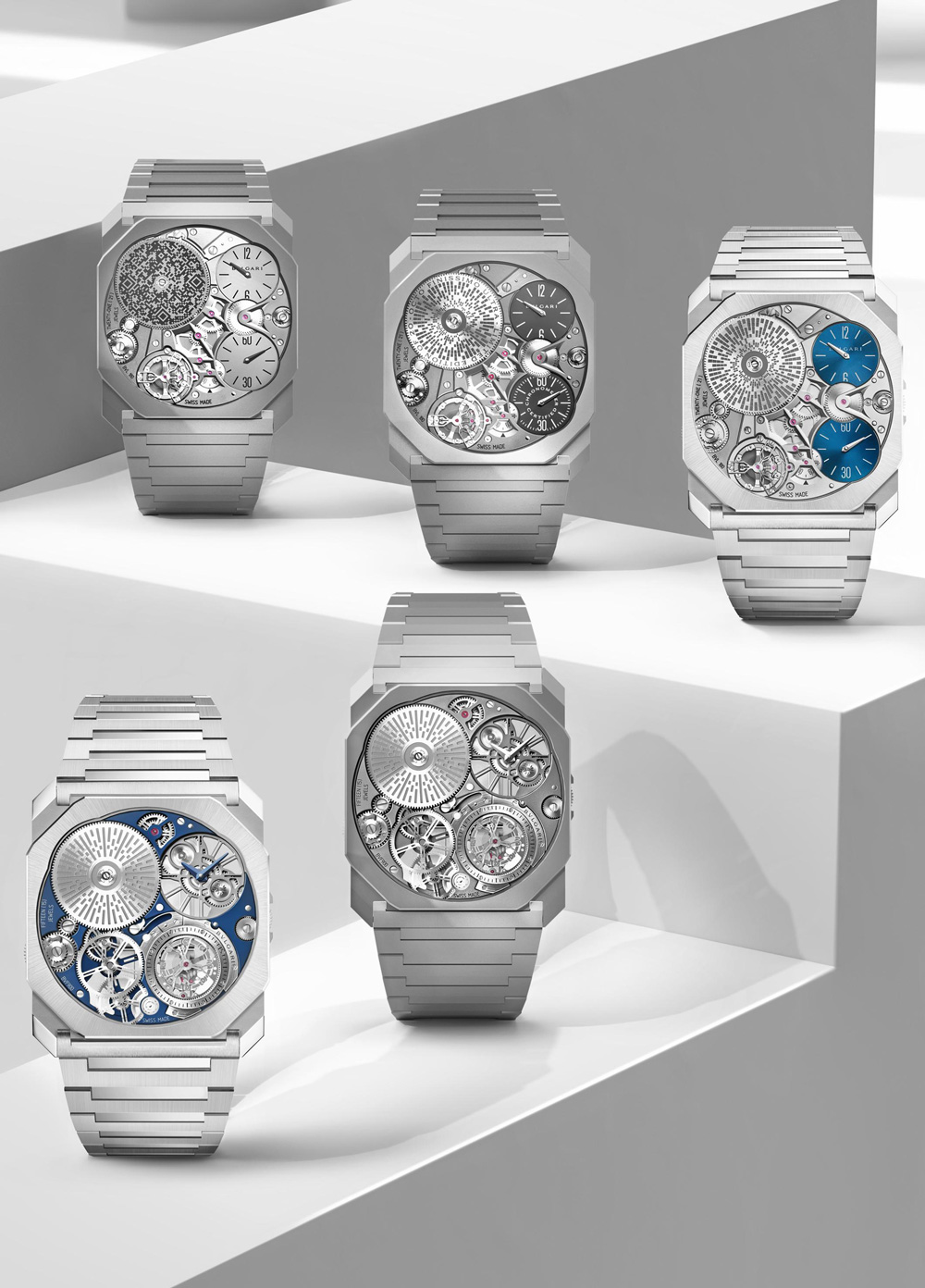 在日内瓦“钟表与奇迹”高级钟表展上,新款Octo Finissimo系列腕表惊艳亮相,并提供四种不同款式。