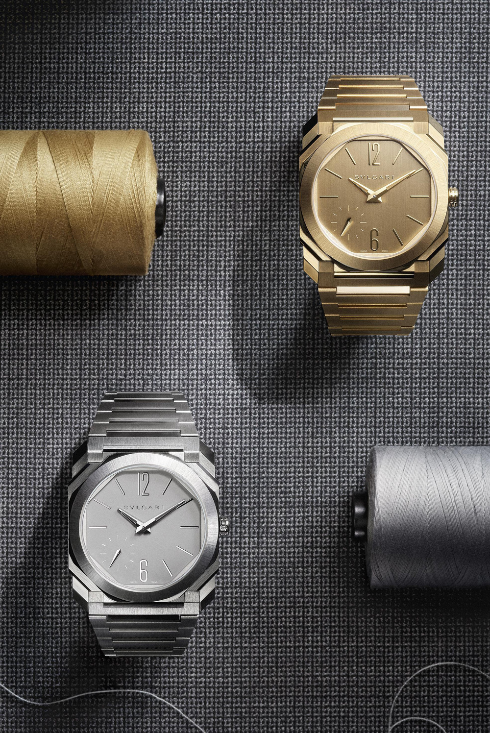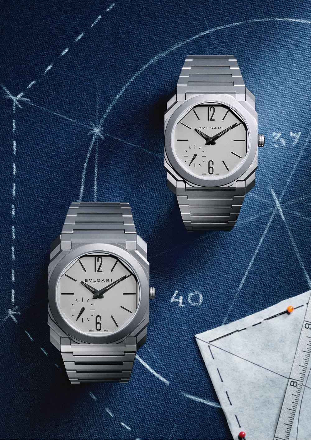 其中一款采用钛金属材质精心打造,这种材质兼具现代感、出众性能与轻盈质感,已然成为该系列腕表的标志性材质。事实上,钛金属已运用于十款Octo Finissimo系列腕表,其中七款在各自类别中保持着品牌超薄腕表纪录,包括2016年发布的Octo Finissimo三问腕表,以及2021年问世的Octo Finissimo万年历腕表。其中,Octo Finissimo万年历腕表曾荣获日内瓦高级钟表大赏(GPHG)的“金指针奖”(Aiguille d’Or)。