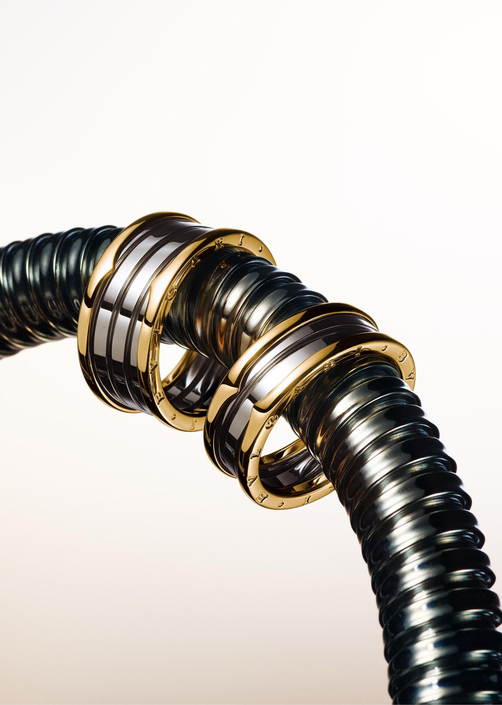 “金与精钢”跨越多元创意疆界,已然成为宝格丽的核心设计语汇之一,于珠宝与制表两大领域之间自如游走。精钢,这一传统上与工业领域紧密相连的耐用材质,在珠宝制作中却因成型难度高而面临重重挑战。宝格丽将精钢与18K金搭配组合,演绎迥异材质的精妙交融,彰显出其作为意大利珠宝世家锐意突破的创作构想。