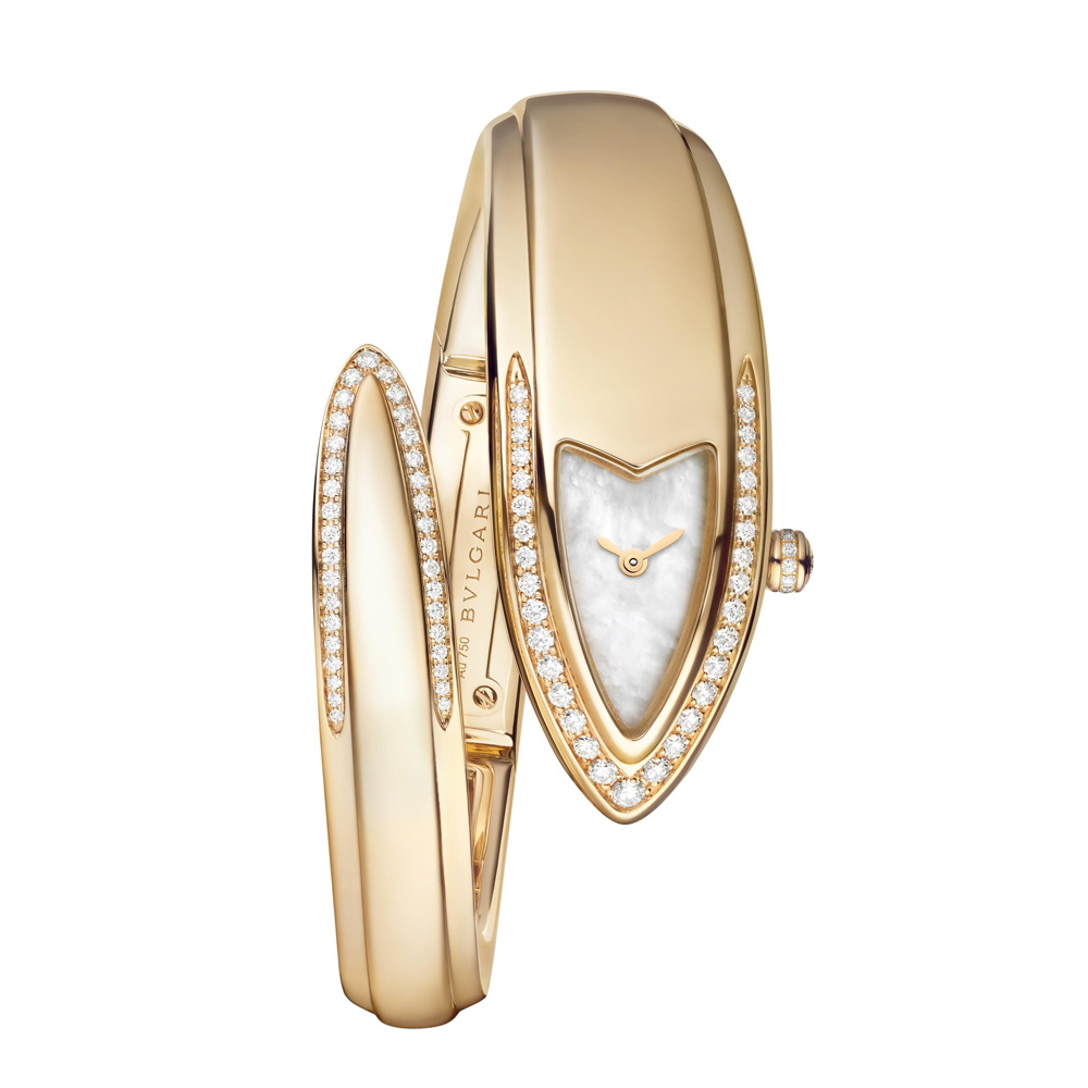 宝格丽首次以黄色18K金材质勾勒Serpenti Aeterna系列腕表的经典轮廓。这种灿若骄阳的金属材质进一步凸显了腕表的精美设计与动人魅力,令其兼具日常舒适与精致优雅。
