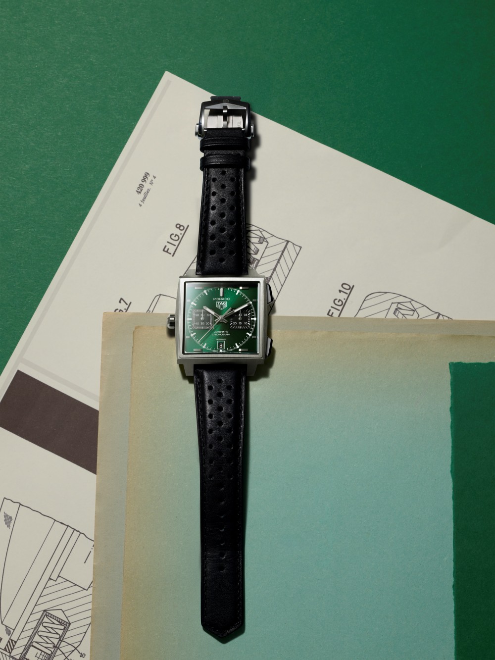 全新时计推出三种配色:标志性的泰格豪雅摩纳哥蓝,灵感源自史蒂夫 · 麦昆在1971年上映的电影《极速狂飙》 (Le Mans) 中所佩戴的传奇时计;精致的深绿色表款,从经典英国赛车配色竞速绿中采撷灵感,采用了精美的太阳纹磨砂与漆面工艺;而黑色盘面表款则尽显优雅格调,采用了由5级钛金属与 18K 5N 玫瑰金打造的双色表壳。每一款腕表均配备赛车风格表带,搭配经过全新设计的5级钛金属折叠表扣。