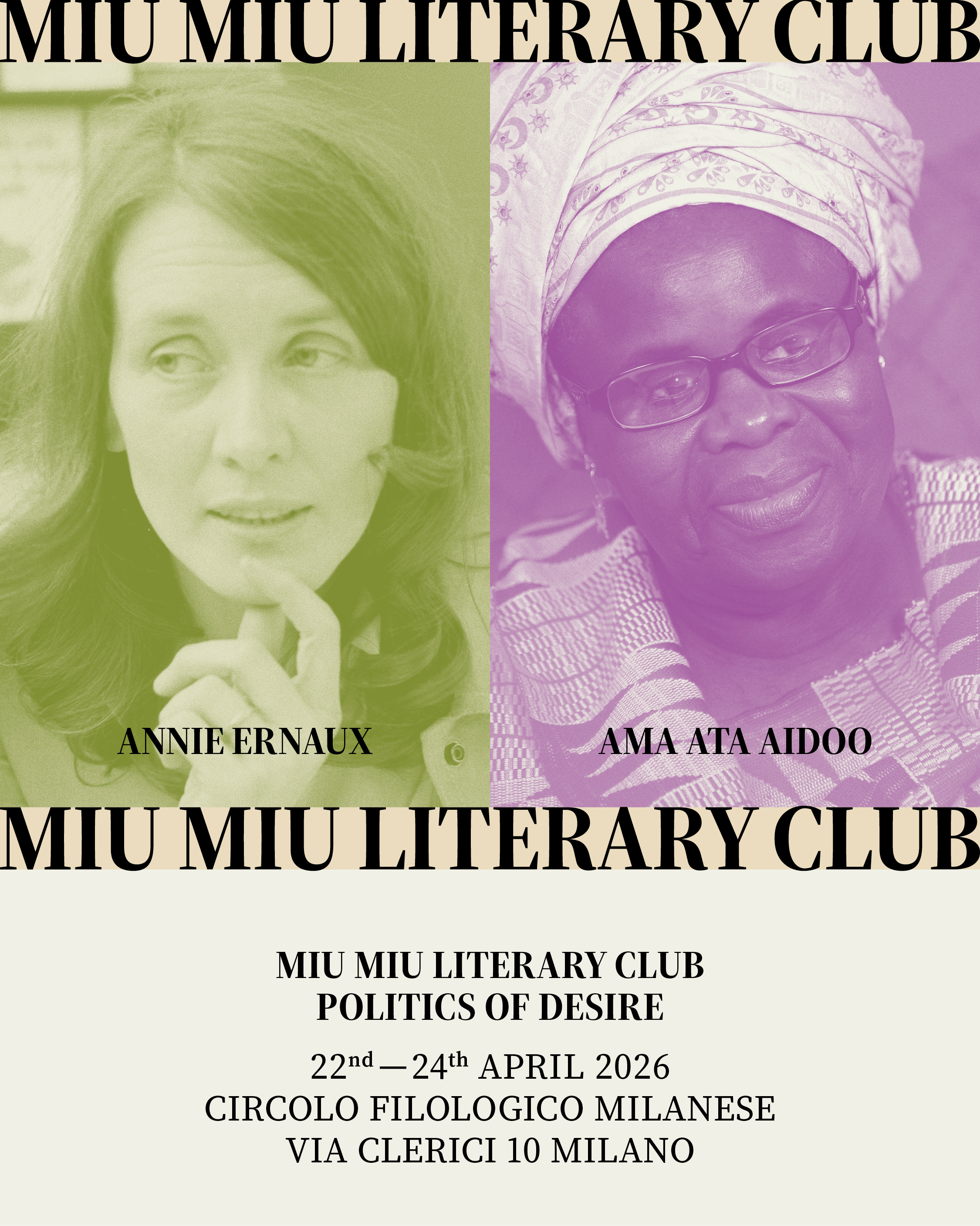 如今,这一旅程抵达了一个更深邃、更本质的交汇点:“欲望的政治”(Politics of Desire),驻足反思“欲求”所承载的政治分量。如果教育教会了我们应该渴望什么,那么欲望的政治则询问我们真正想要什么。审视自身的冲动并理解同意的神圣界限,不仅仅是一种私人实践,其本身就是一种政治行为。这意味着将意志转化为解放的工具,拆解女性作为他人欲望客体的观念,最终使她们重新成为自身欲望的主体。若没有自始至终引领Miu Miu文学俱乐部的多元声音,这一探索便无从谈起。Alba de Céspedes和Sibilla Aleramo等当代女性主义叙事的先驱者,与圆地文子及张爱玲的智慧交织在一起,揭示了激情背后的隐形脉络;Simone de Beauvoir哲学式的严谨与Annie Ernaux不加修饰的记忆,则与Ama Ata Aidoo的后殖民力量展开对话。这些女性尽管来自不同的时代与地域,却有着相同的姿态:她们是时代的激进观察者,深谙当故事由女性声音讲述时所蕴含的颠覆力量。