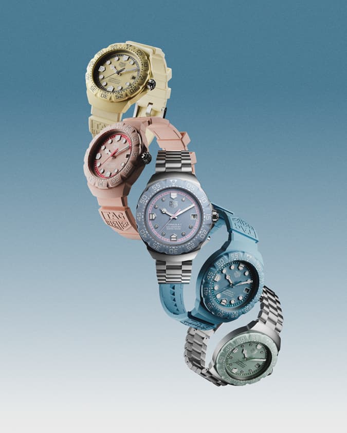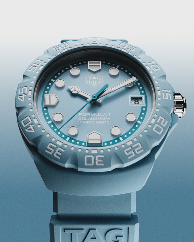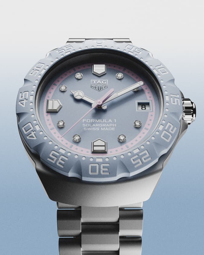 TAG Heuer泰格豪雅倾心呈现全新 F1 系列 Solargraph 太阳能腕表 (38毫米),以粉彩配色诠释竞速锋芒。