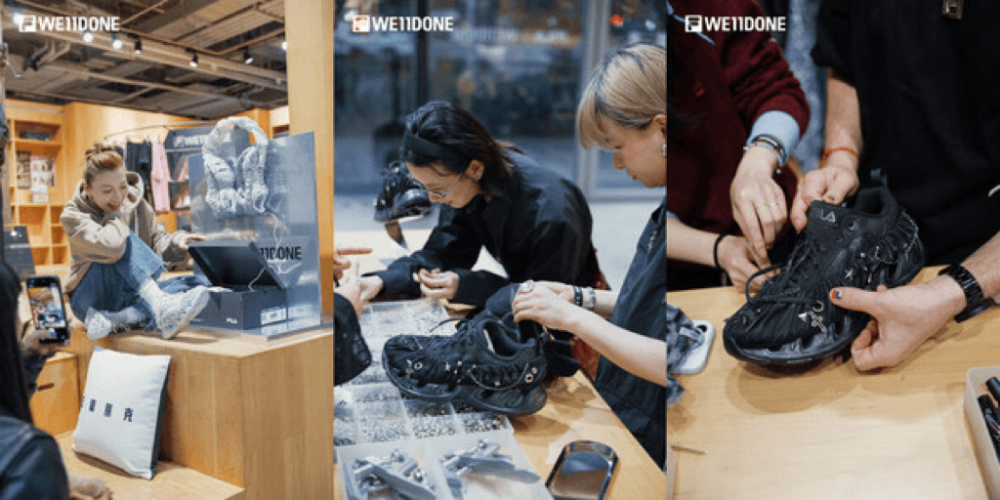 活动现场潮流达人上身演绎FILA x WE11DONE联名VETTA「V头鞋」,诠释“低糖朋克”穿搭态度