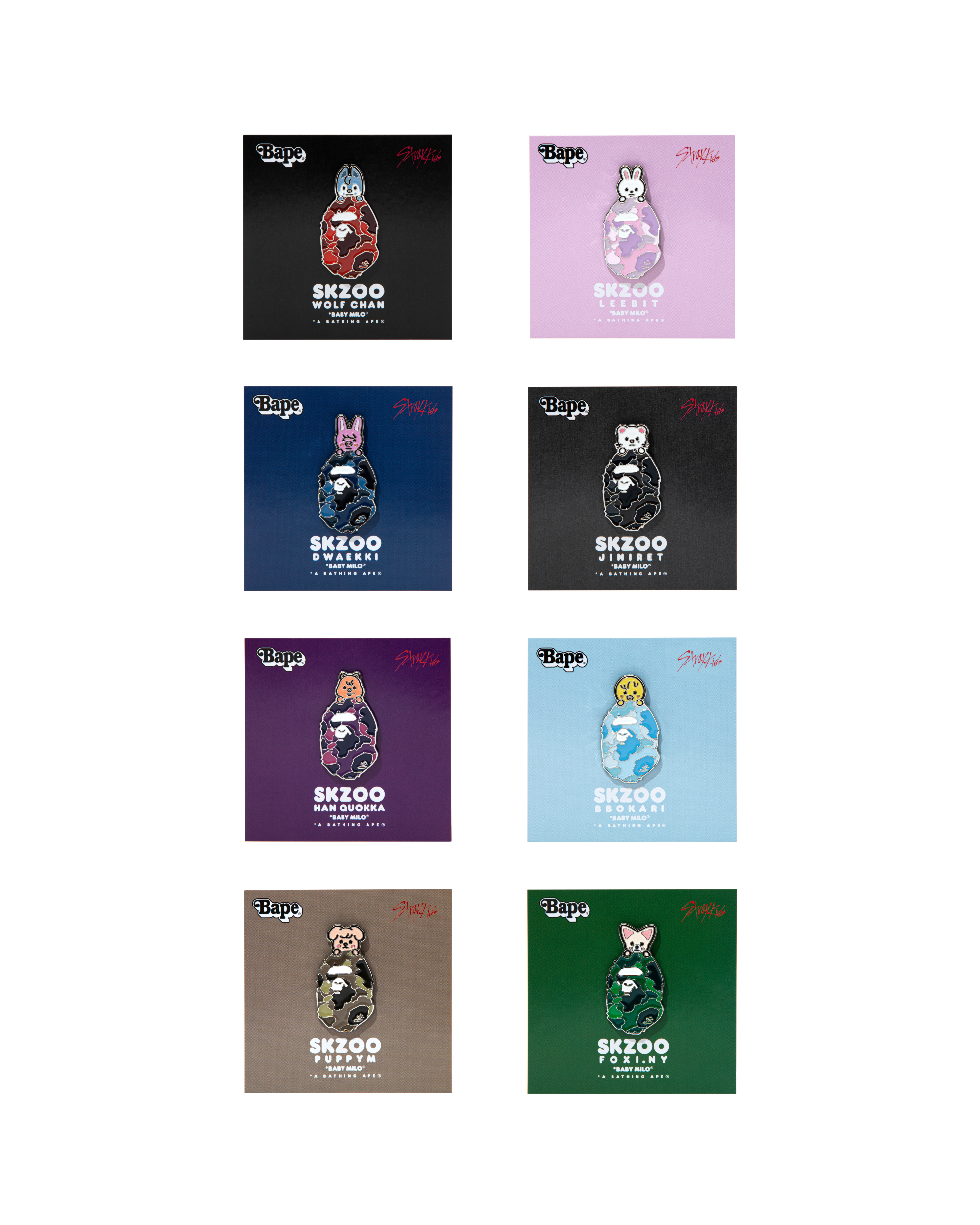 为庆祝与STRAY KIDS的首次合作,BAPE®独家推出特别设计的BAPE STA™运动鞋。鞋款灵感源自八位成员挑选的COLOR CAMO设计,每双鞋都配有SKZOO与BABY MILO®卡通鞋带扣,粉丝可进行自由搭配,打造独一无二的BAPE® × STRAY KIDS BAPE STA™。