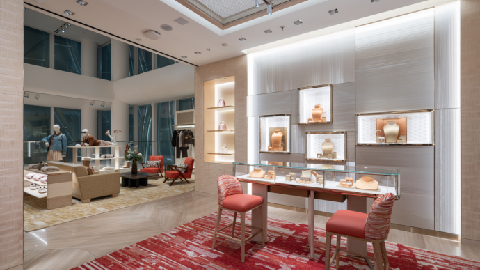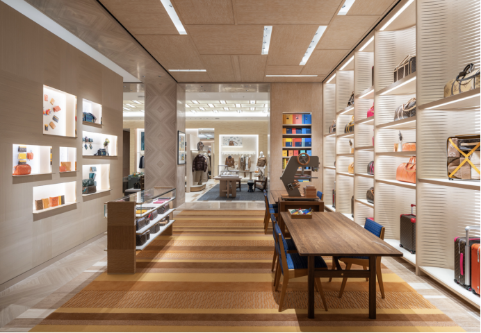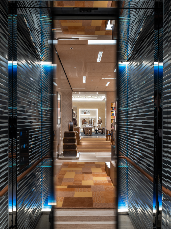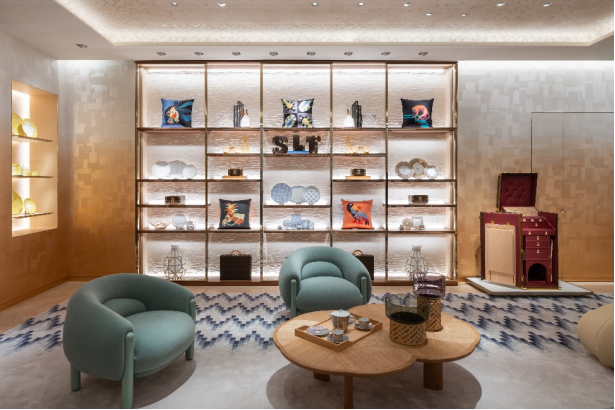 路易威登经典作品分布于四层空间内,涵盖男士和女士皮具、成衣、鞋履、珠宝、腕表、香氛、美妆及配饰。四间尊享沙龙专为贵宾提供独特体验。全新家居系列位于三层,可呈献私享体验,供客人欣赏精选家具、织物和餐桌艺术。全新餐桌艺术系列包括Constellation、Splendor与Dolce Vita;同时,多色Flower花卉玻璃瓶与缤纷Twist玻璃杯及Blossom花瓶相映成趣。出自Patricia Urquiola与Cristian Mohaded等设计师的合作系列,以及别具韵致的Depero家居纺织系列亦陈列其中。