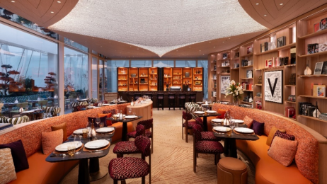 首先步入的是“无限之境”,即镜面环绕、空间交错的前厅。光影交映间,陈列的书籍仿佛诉说着旅行、文化与探索的永恒故事。穿过这方意蕴动人的起点,客人将进入以流线造型与柔和轮廓出彩的主餐区,在此感受宁静与亲密的氛围。