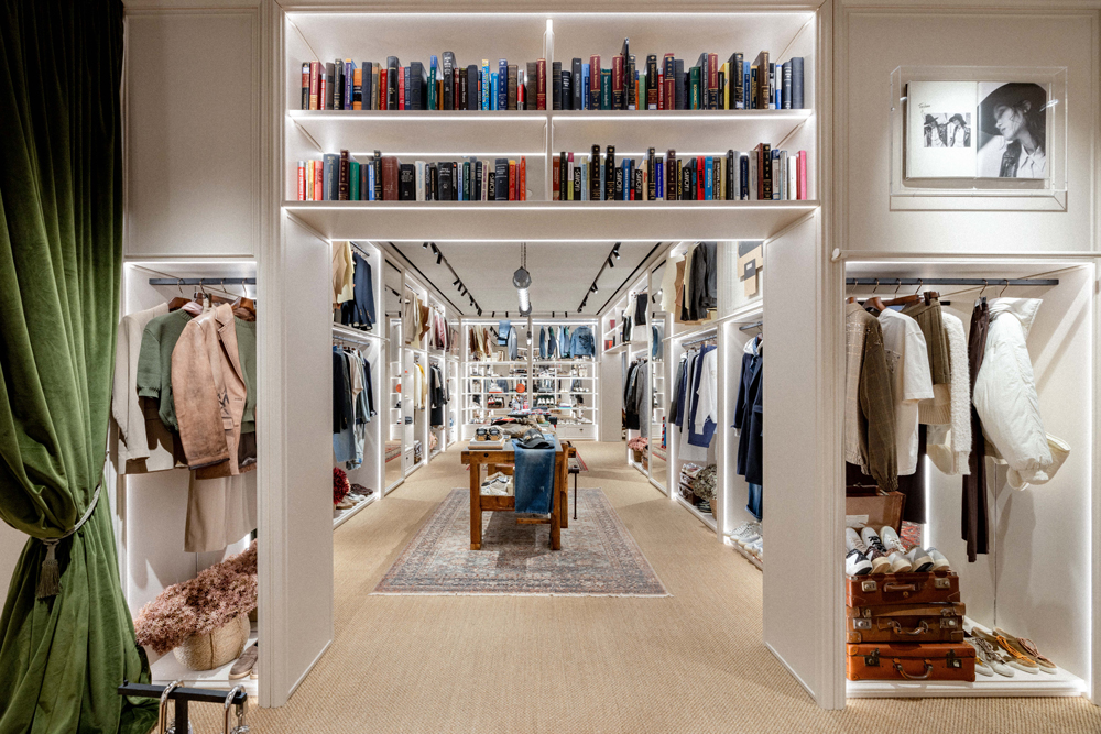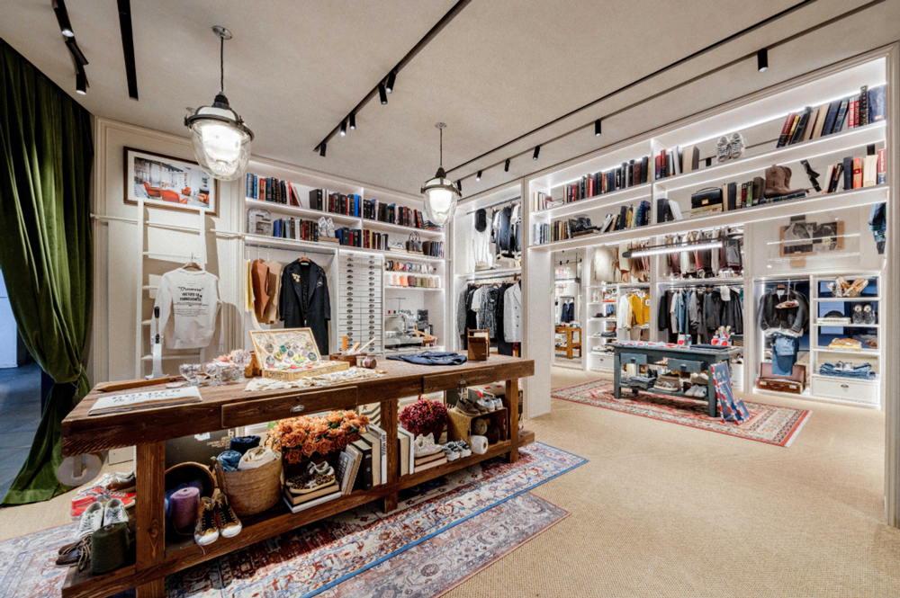 店内精心陈列 Golden Goose 最新男女成衣系列、鞋履系列,以及涵盖手袋、太阳镜、首饰等品类的配饰系列。