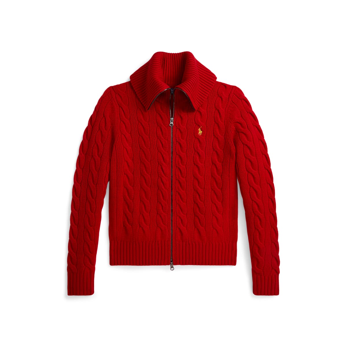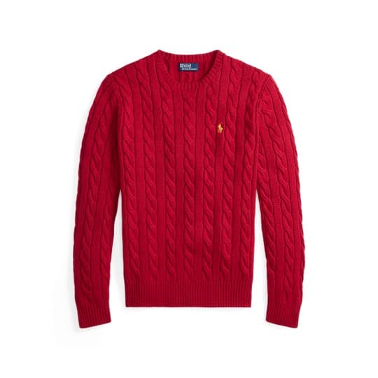 这款绞花编结针织衫属于我们的新年系列,选用柔软的棉质纱线织就,胸前饰有雅致的标志性 Polo 小马刺绣