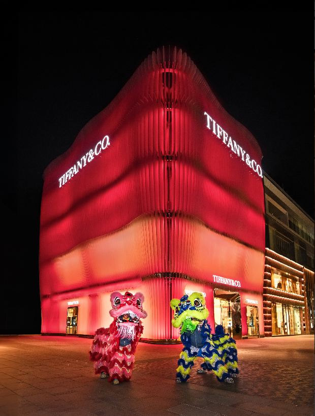 Tiffany & Co.蒂芙尼融入三里屯太古里“潮狮亮相——新年醒狮派对”的浓厚新年氛围中,以象征喜悦与祝福的 “中国红”首次点亮位于在北京三里屯太古里旗舰店的建筑外立面,仿若一盏美丽的 “红灯笼” 。当东方色彩融合现代表达,成为独特在地文化体验的又一重要时刻,共同致敬中国传统文化。