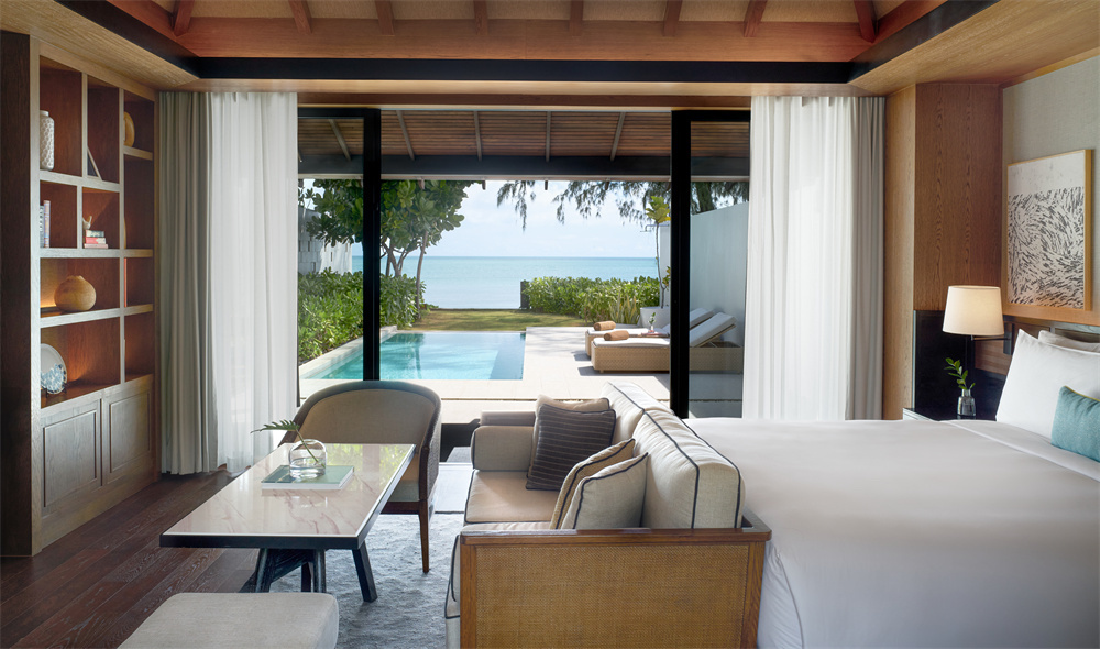 在这里,度假的节奏可随心掌控。清晨在专属瑜伽垫上舒展身心,或是用智能家居影音与私属调酒吧台,随时开启一场慵懒的池畔派对。想要独处安静时,不妨在饰有泰风砖艺的深浸式浴缸里舒缓身心,澳洲知名护肤品牌Aesop伊索的全套特调香气,足以抚平所有疲惫。