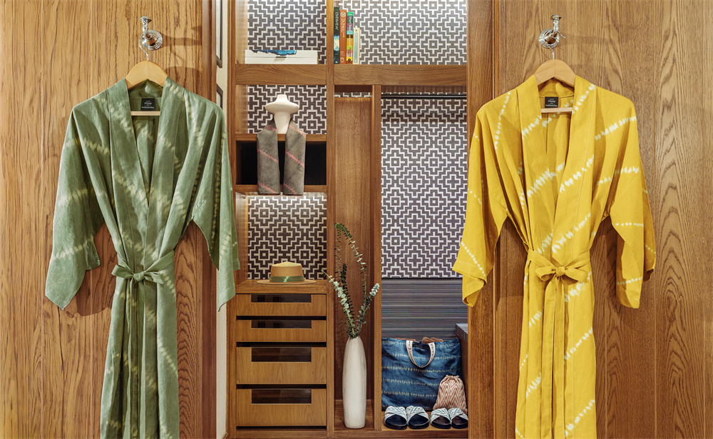 空间的美感,源于对本土文化的深刻致敬。别墅巧妙糅合了泰式传统的呼吸感与现代旅居的奢适。酒店特别携手有机纺织设计师品牌PARISSARA,呈现“海之密语”特别企划。从植物染真丝亚麻浴袍、手工编织斜挎包,到扎染系带草帽与亚麻沙滩包,每一件织物都带着清迈、伊桑等地手作匠人的温度。不仅能沉浸于这份生态友好的质感生活;若遇心动,亦可在精品店将其收入囊中,把苏梅岛的灵动记忆带回家。