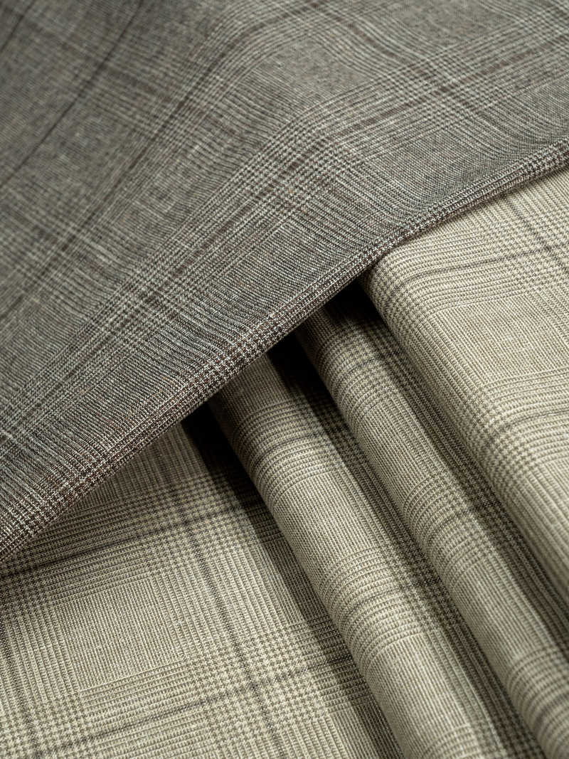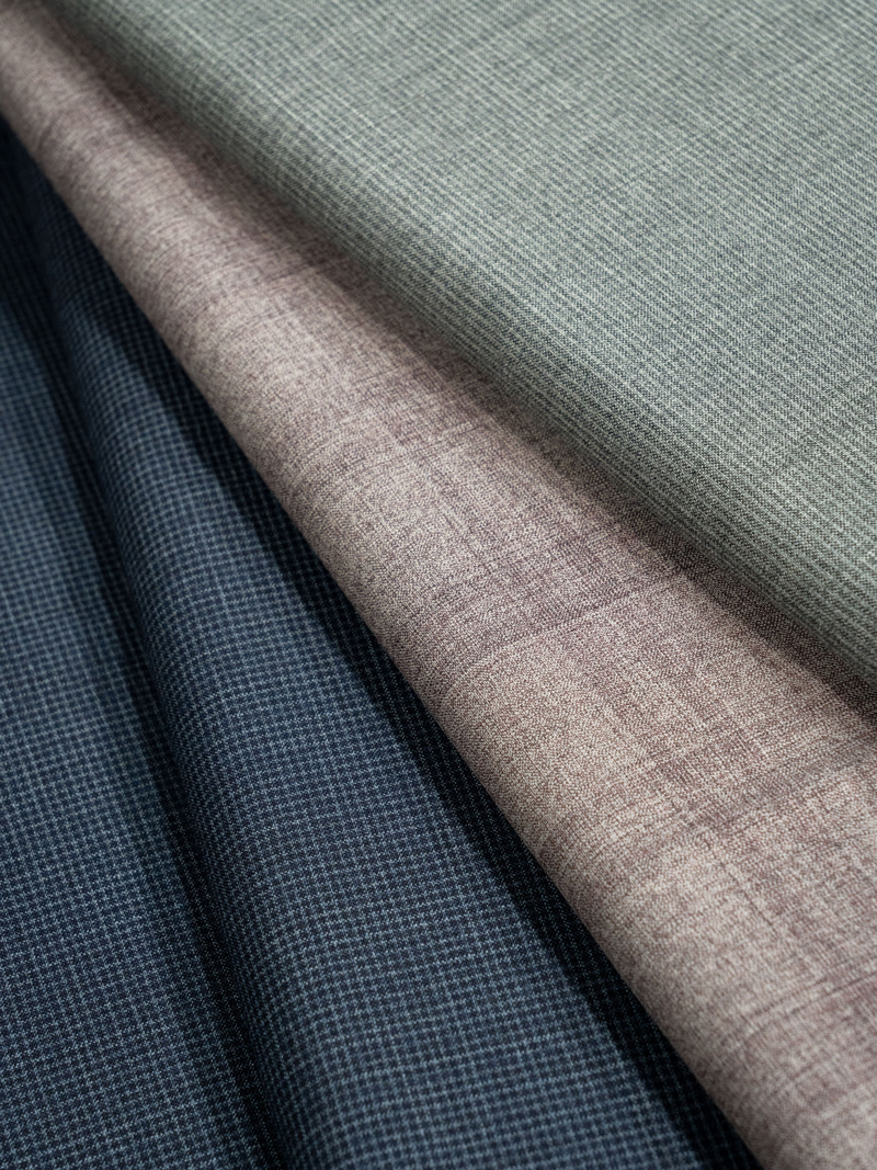 本系列面料以羊毛、真丝和亚麻为核心,打造夏日天然混纺面料。羊毛带来柔软亲肤感,真丝增添光泽和轻盈度,亚麻塑造清爽且轻微不均匀肌理。三种纤维精妙混纺,幻化出丰富表现力,成就轻盈透气、个性鲜明的面料,表面略带不规则肌理、触感精致挺括、气质随性优雅,专为温暖时节打造。该系列为一系列羊毛、真丝和亚麻混纺的西装面料,光泽雅致、手感挺括,将亚麻的精致松弛感和高捻纤维的优异性能融为一体。有素色和花纱款式可选,色彩选择丰富,从自然色调、灰色,到蓝色全色系、绿色、粉色、酒红和绿松石色,一应俱全。另有一种亚麻、羊毛和真丝混纺西装面料,提供立体斜纹和鲨皮纹两种款式,轻盈舒适且带天然肌理,以现代、清爽、时髦的巧妙平衡,优雅诠释亚麻的原生质感。