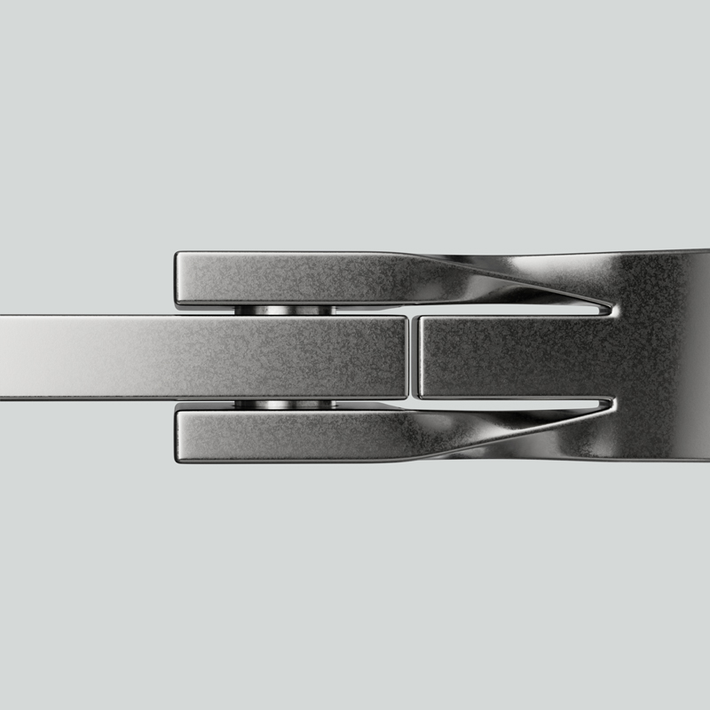 LINDBERG全新blok titanium系列的前框与铰链由单片钛金属激光切割一体成型,颠覆传统制作范式。该系列将品牌标志性的圆柱体铰链革新重塑,以大胆的立方体结构呈现——无需一颗螺丝,仅通过精准扭转旋合而成,为LINDBERG卓越工程技术史册续写崭新篇章。贯穿全钛框架的棱角分明设计,为更广泛的受众塑造出雕塑感造型。丰富的钛金属与凹槽填色组合,使该系列实现了工业美学与个性表达的完美平衡。