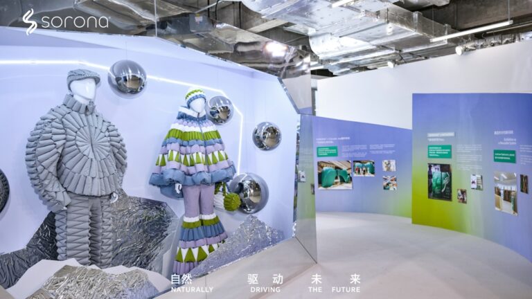 当我们如同脱离地球、身处宇宙般,穿过洁白的云层将视线投射向地球,幽静流动的蓝与沁人心脾的绿意点缀,显得尤为动人。从「材料进化中心」关于材料从分子结构到纤维系统的技术逻辑呈现,到「材料进入生活」版块关于城市律动、户外适应、动态表现、羊毛系列的多元场景适应性的表达,再到「共创发生地」与设计品牌RAXXY的联合系列“URBAN SURFACE PROTOCOL”亮相,以及「循环行动」篇章SORONA®品牌在上海MODE展、ANTAZERO零售空间以及上海兴业太古汇的可持续践行……SORONA®品牌以此向每一位来访的设计力量阐述SORONA®生物基材料核心成分源于自然、结构性能适应自然、以行动守护自然的价值主张与不懈践行,也向他们剖白了未来道路上,SORONA®生物基材料可以带给他们的性能升级、可持续赋能、与灵感加持。在这里,SORONA®品牌不再被视为单一功能元素,而是一种能够连接设计、产业与可持续实践的结构平台。