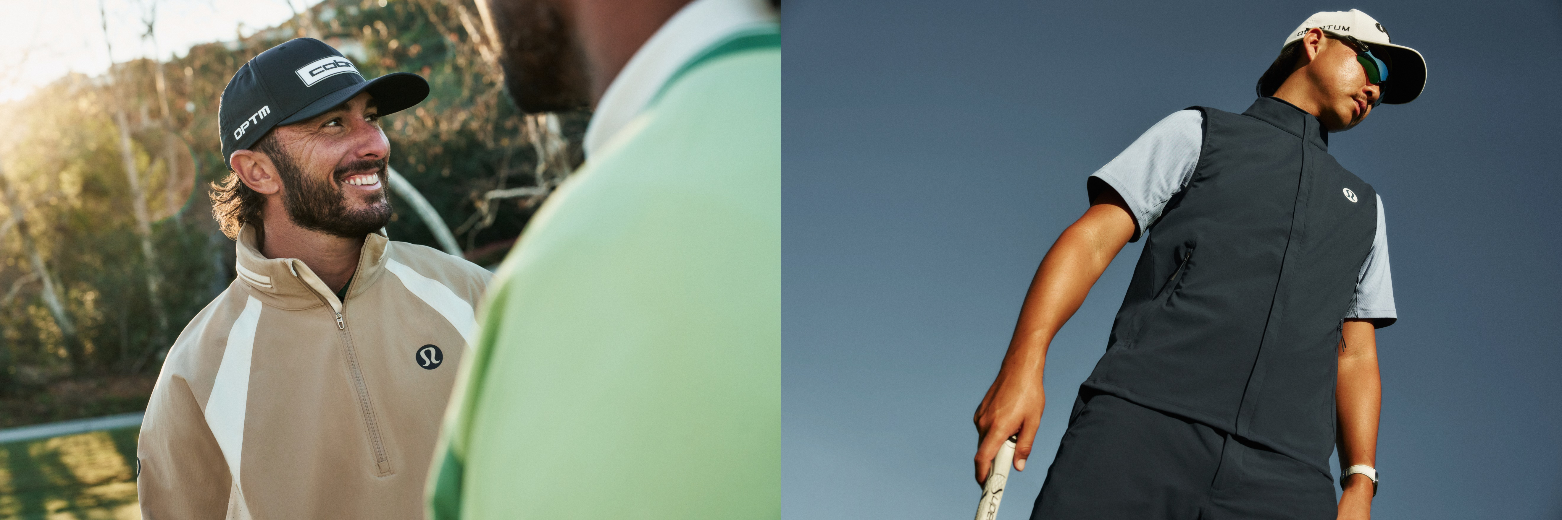lululemon大使Max Homa与李旻宇分别演绎高尔夫半拉链套头衫(左)与高尔夫拉链马甲(右)